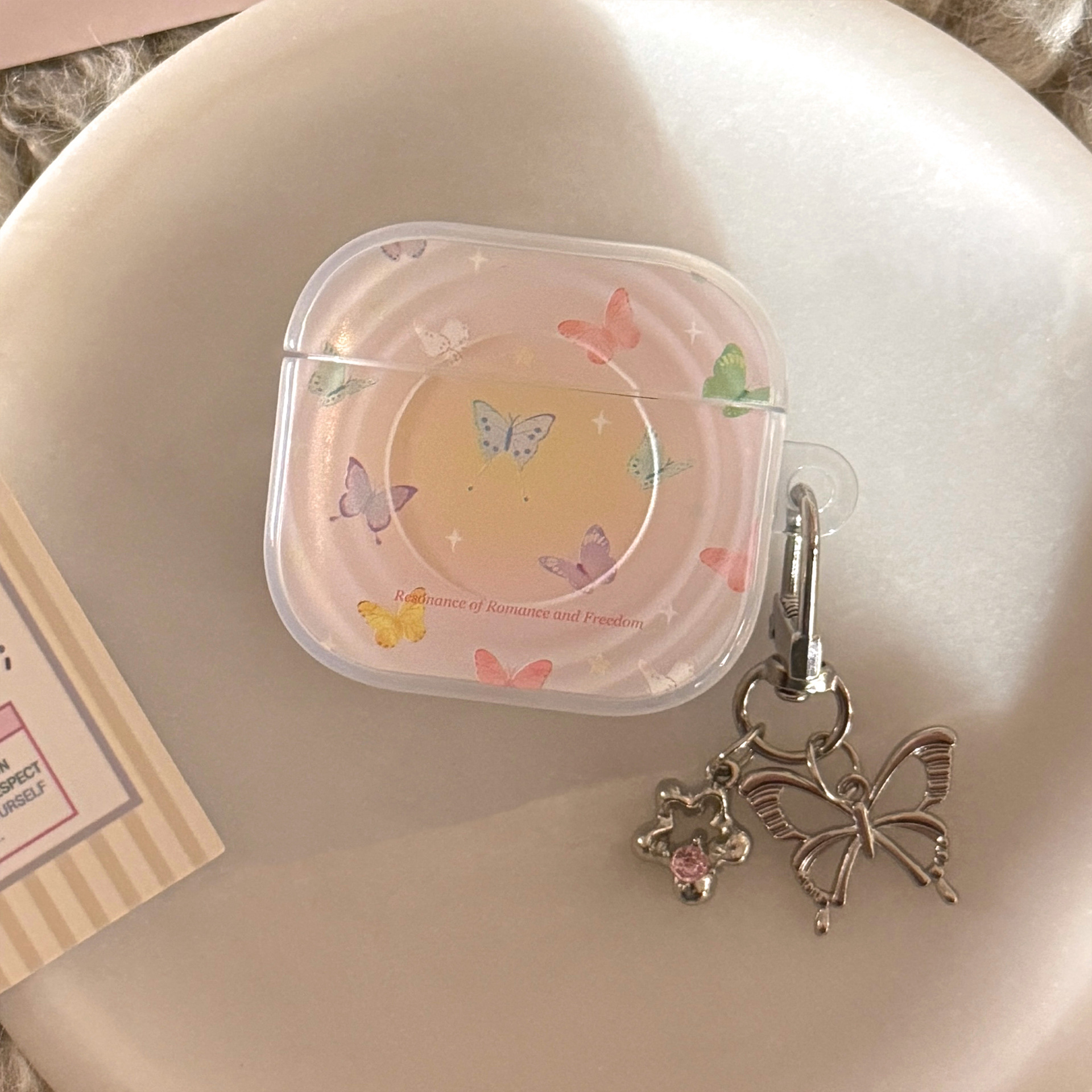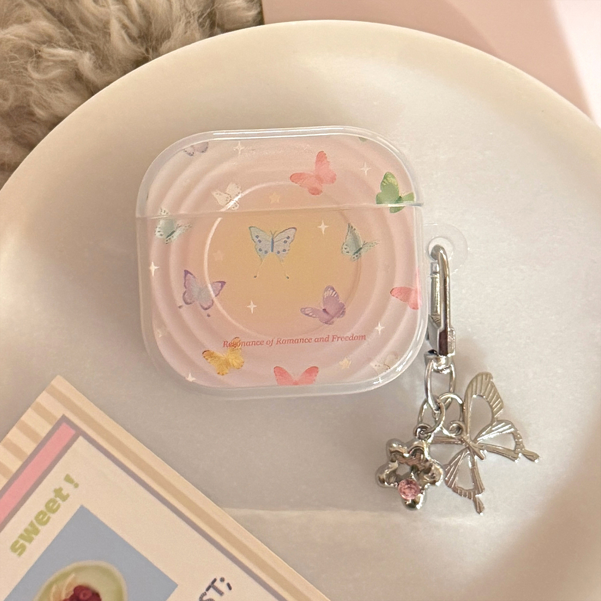 Aplicable a Apple Airpods Pro2 cubierta de color mariposa 1 / 2 Bluetooth 4 generación cubierta de auriculares 3 colgantes de plata galvanizado