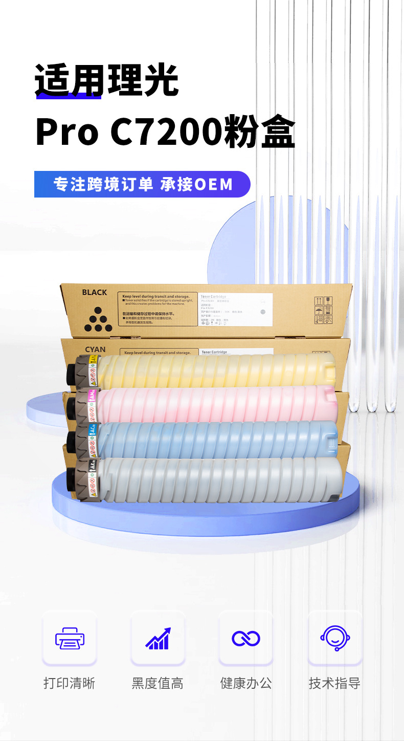 Compatible con cartucho de tóner Ricoh Pro C7200 Pro para impresoras de copiadoras Pro C7200 / C7210