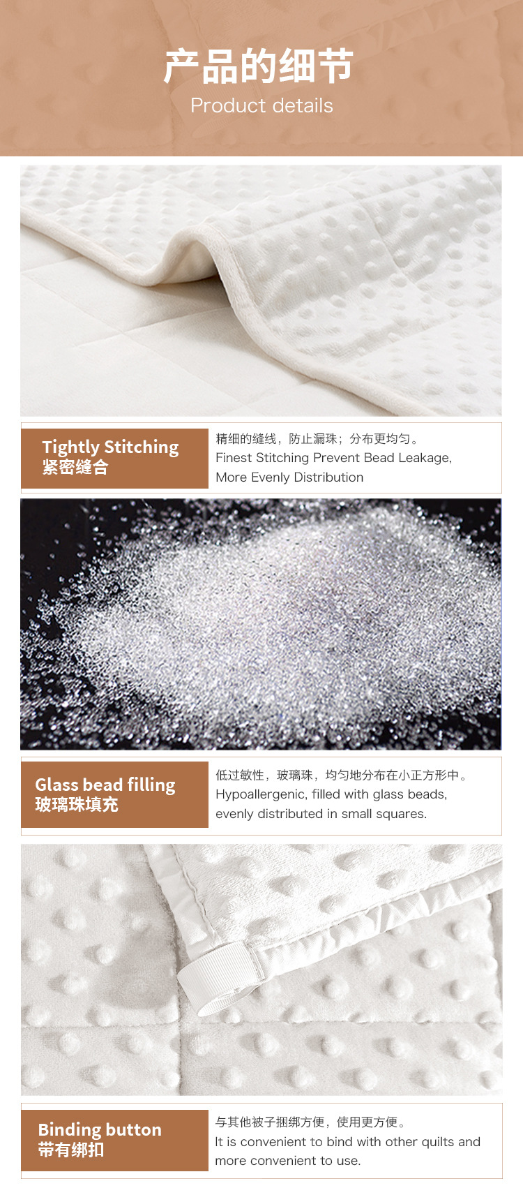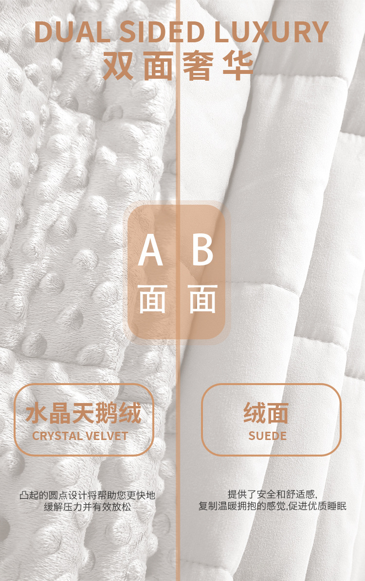 Fábrica europea y americana fuente de manta de gravedad de terciopelo Amazon manta de gravedad espumada blanca ultra suave