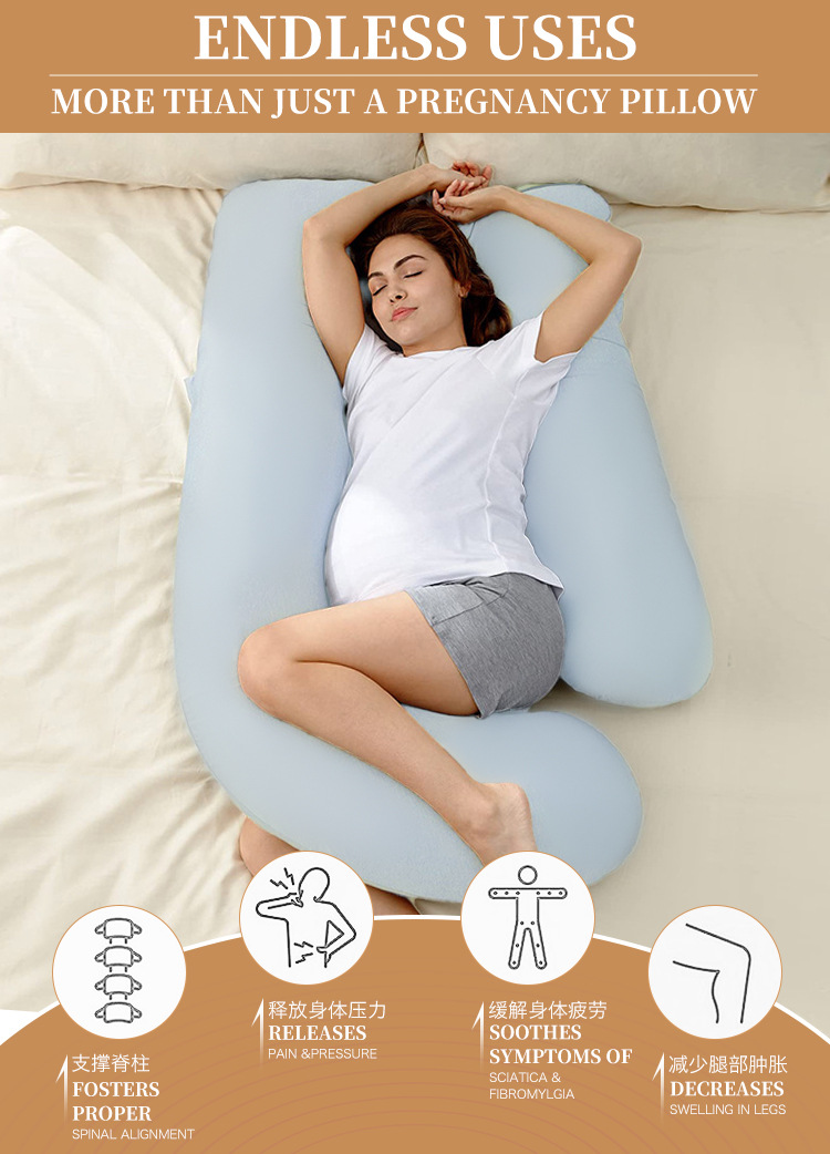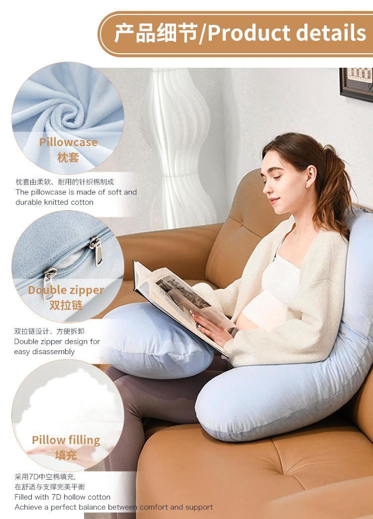 Almohada transfronteriza en forma de U para mujeres embarazadas, almohada lateral para dormir, almohada multifuncional para dormir durante el embarazo, extraíble