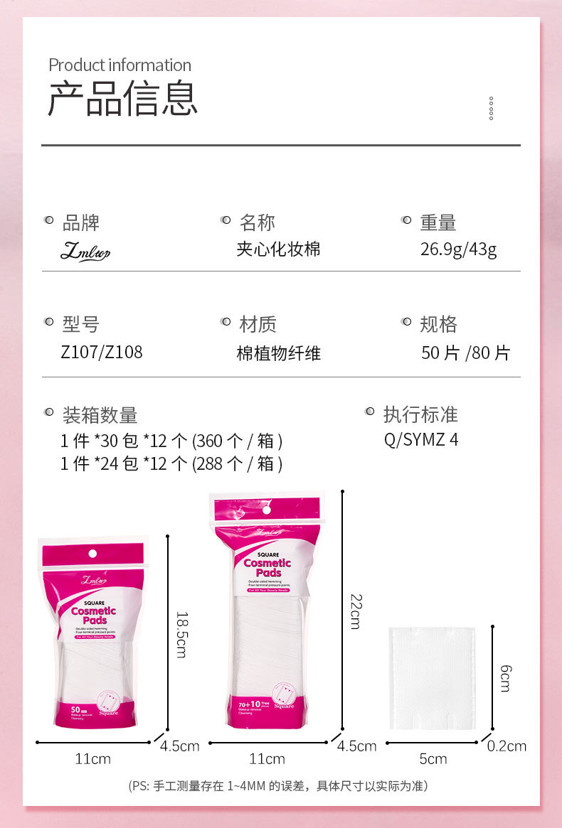 LMLTOP algodón sándwich de 50 piezas, algodón húmedo delgado, exclusivo para Z107 transfronterizo