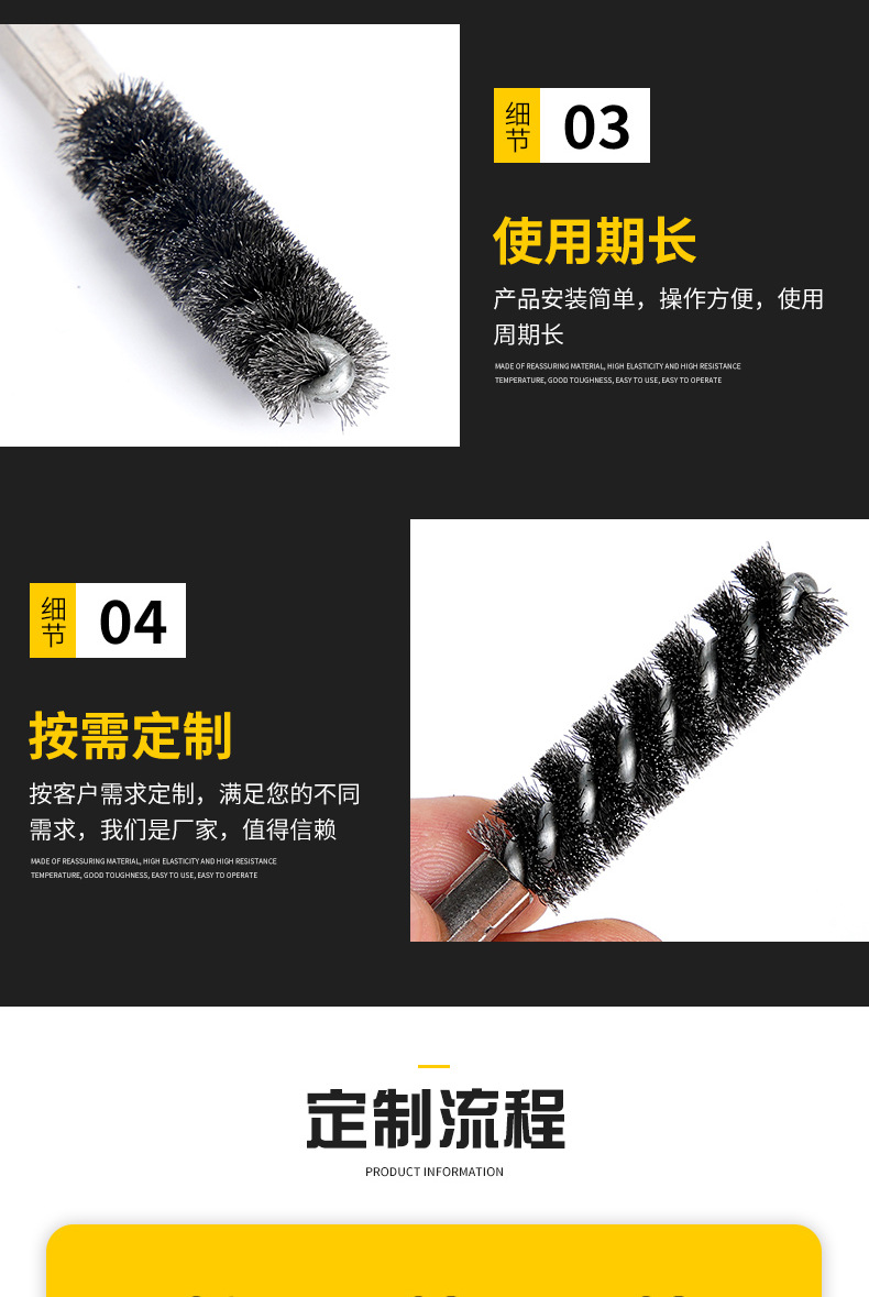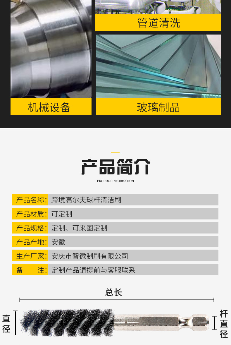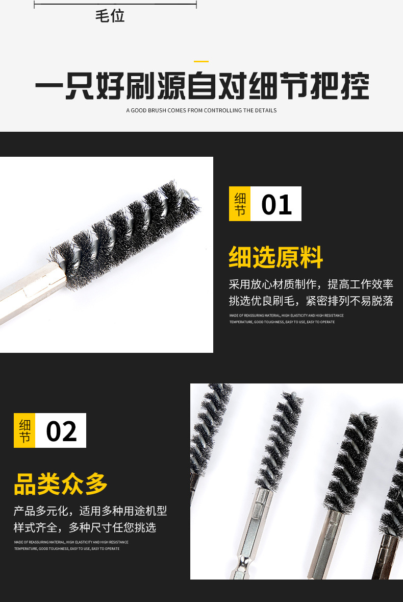 1/4 pulgadas (6.35mm) barra hexagonal cepillo de alambre 304 alambre de acero inoxidable barra de golf cepillo de limpieza tubería
