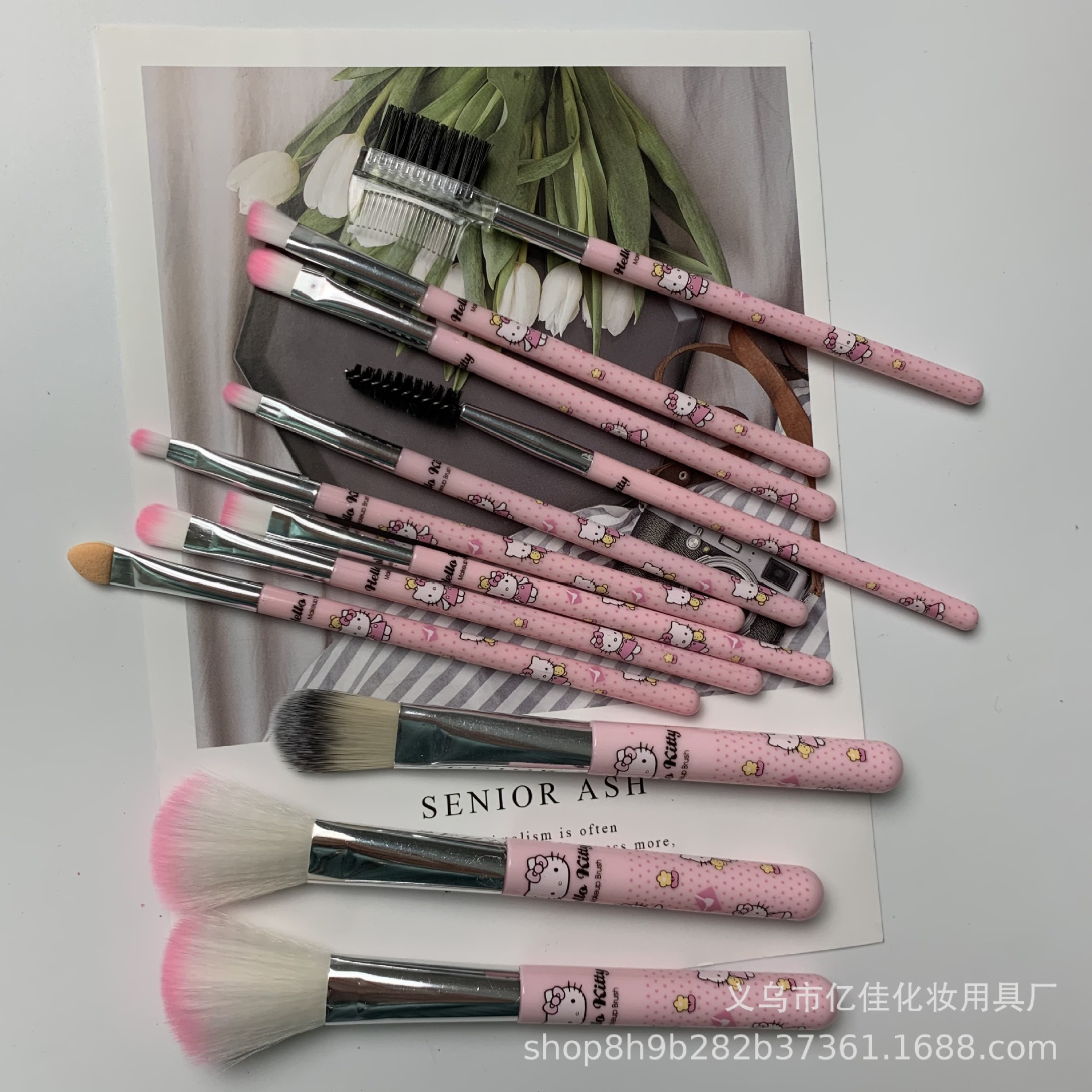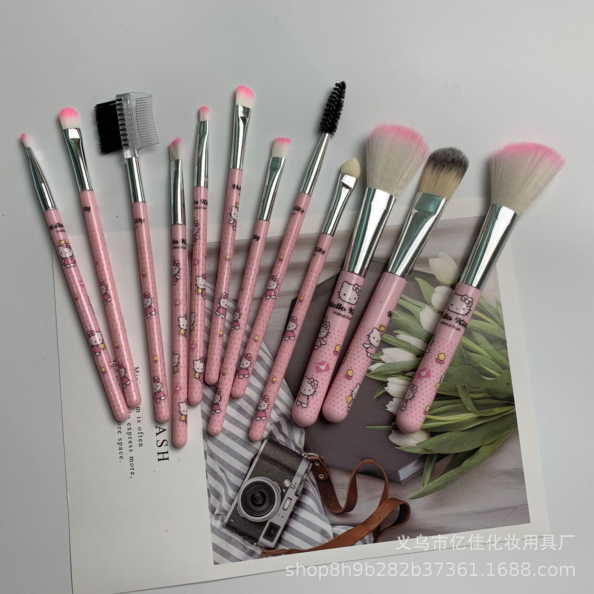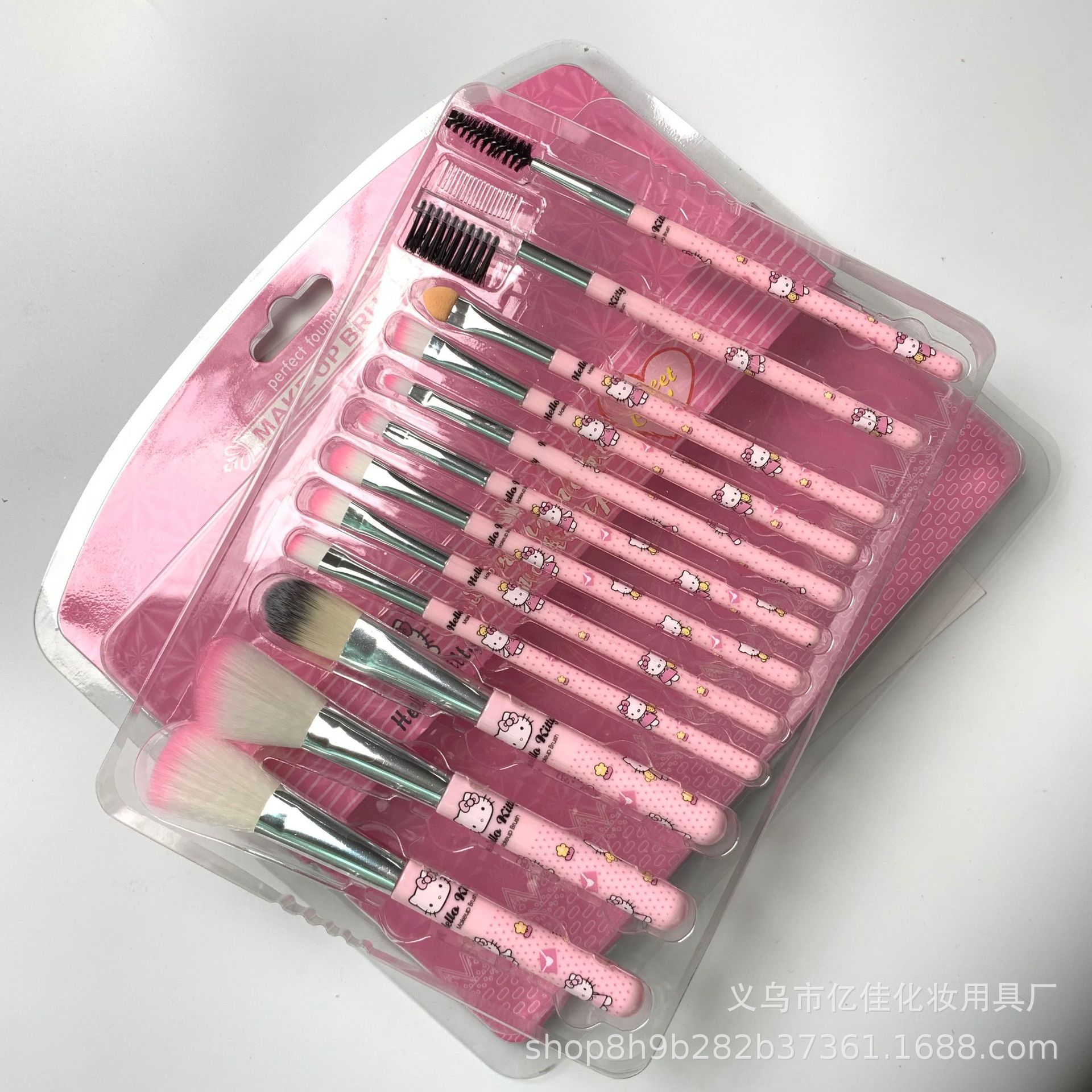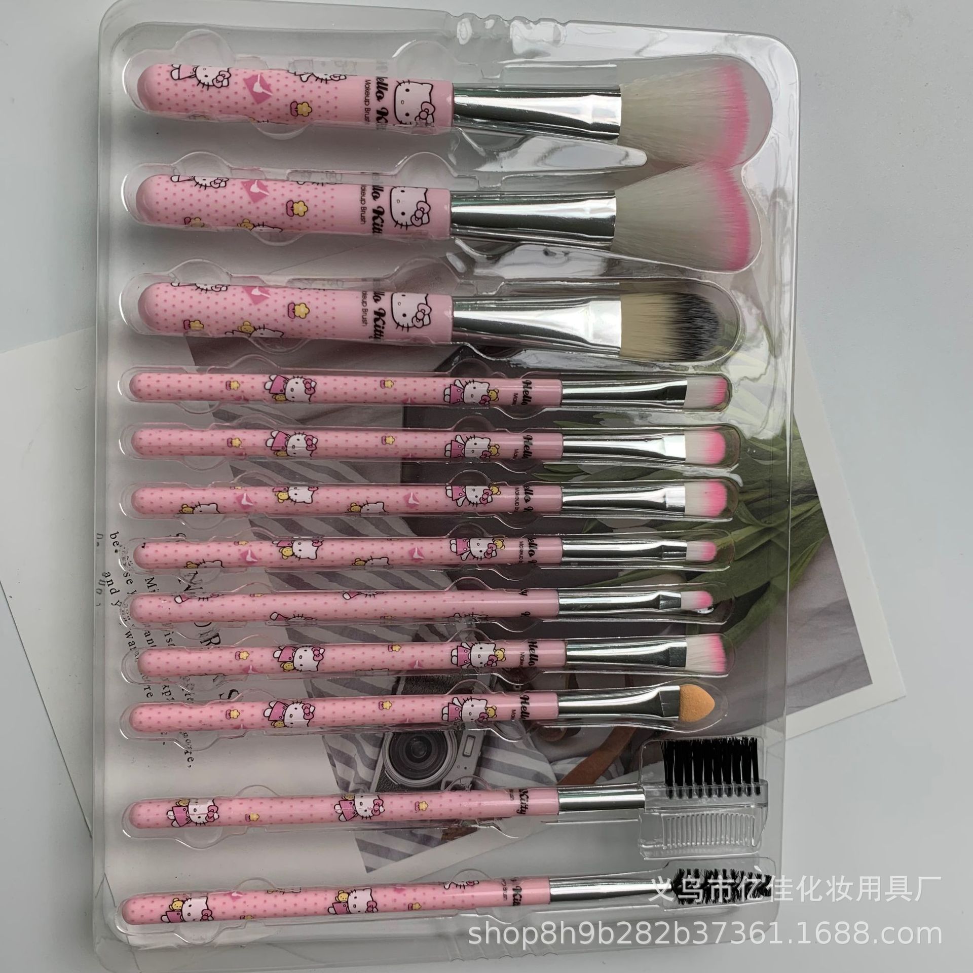 KT gato dibujos animados set cepillo de maquillaje 12 piezas conjunto completo de cepillo de blush cepillo de base herramientas de maquillaje