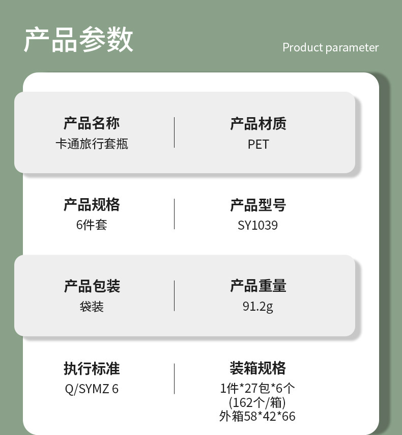 Lamela juego de 6 piezas botella de viaje subenvasada botella de bomba de presión botella de loción botella de spray botella de solapa caja de crema SY1039