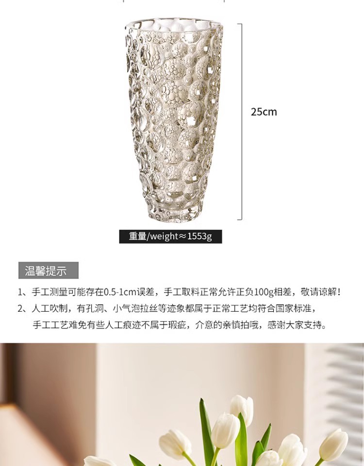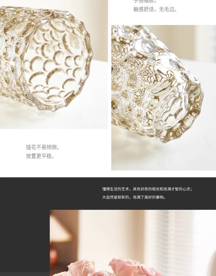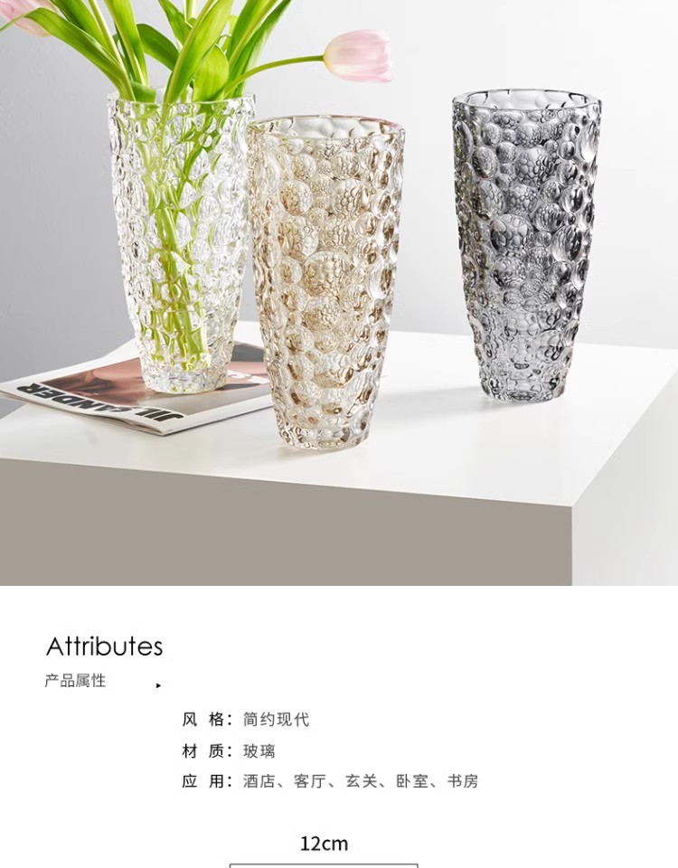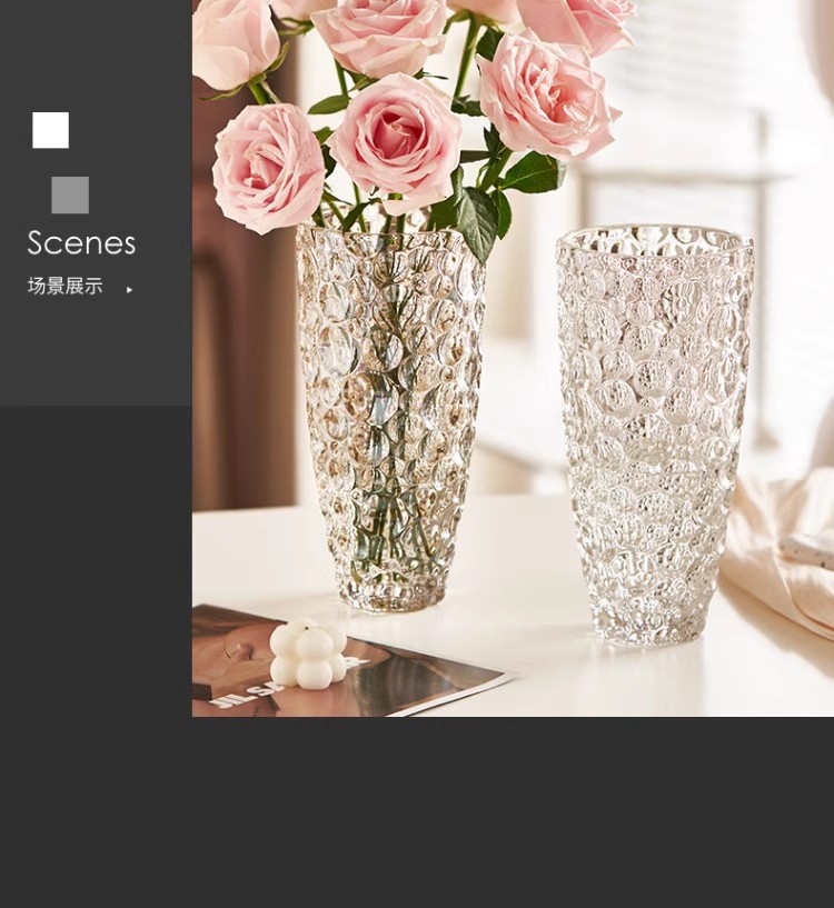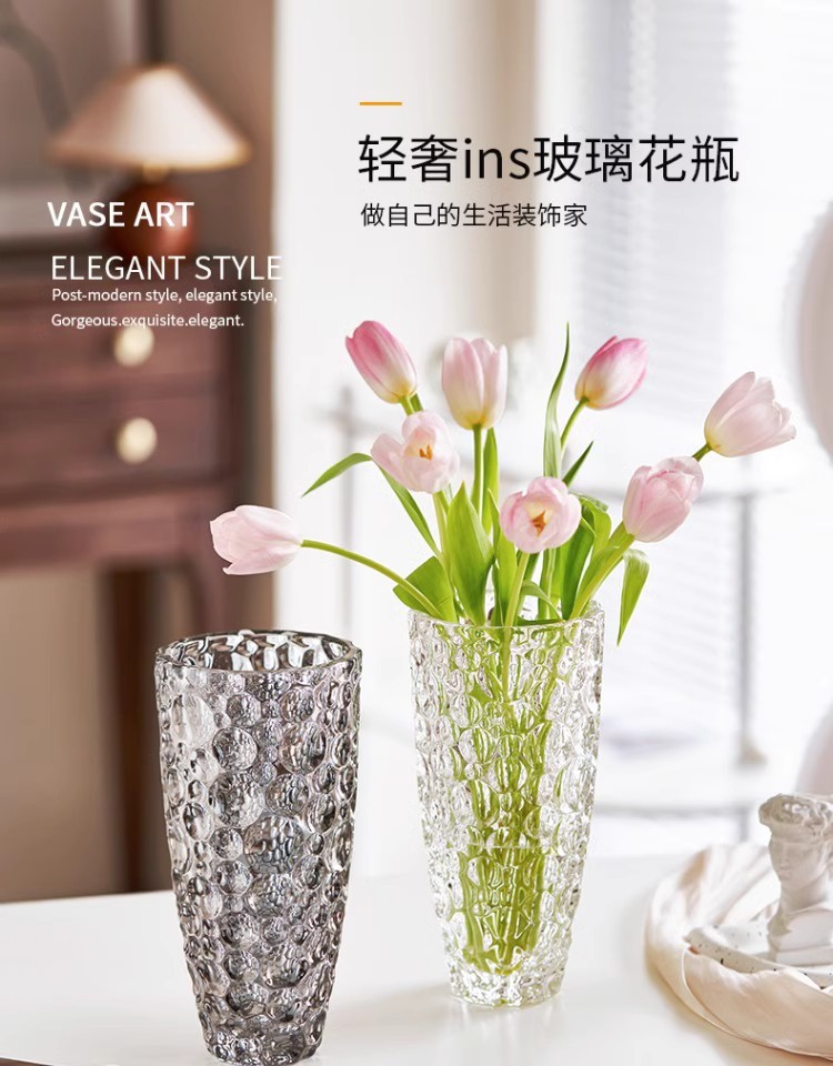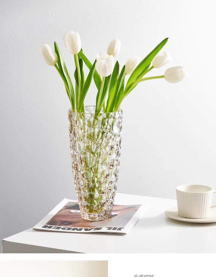 Ornamento de vasijas de alto nivel de lujo ligero vidrio de cristal transparente acuático flor floral decoración de la mesa de comedor