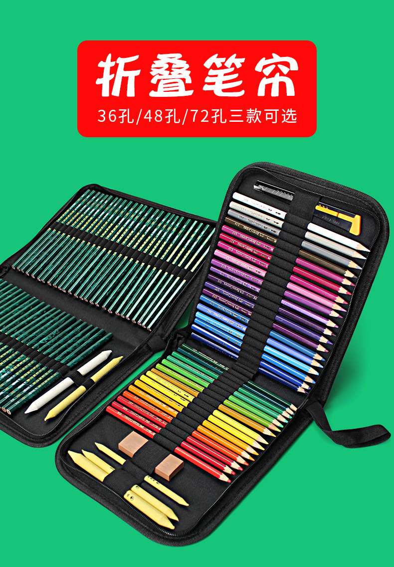 Bolsa de lápiz de lona plegable para bocetos de lápiz cortina para estudiantes herramientas de arte plegables cremallera bolsillo de almacenamiento envolvente