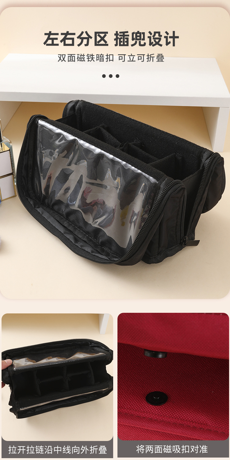 Bolsa de maquillaje de maquillaje de gran capacidad portátil multifuncional desmontable plegable portátil bolsa de maquillaje vertical plegable