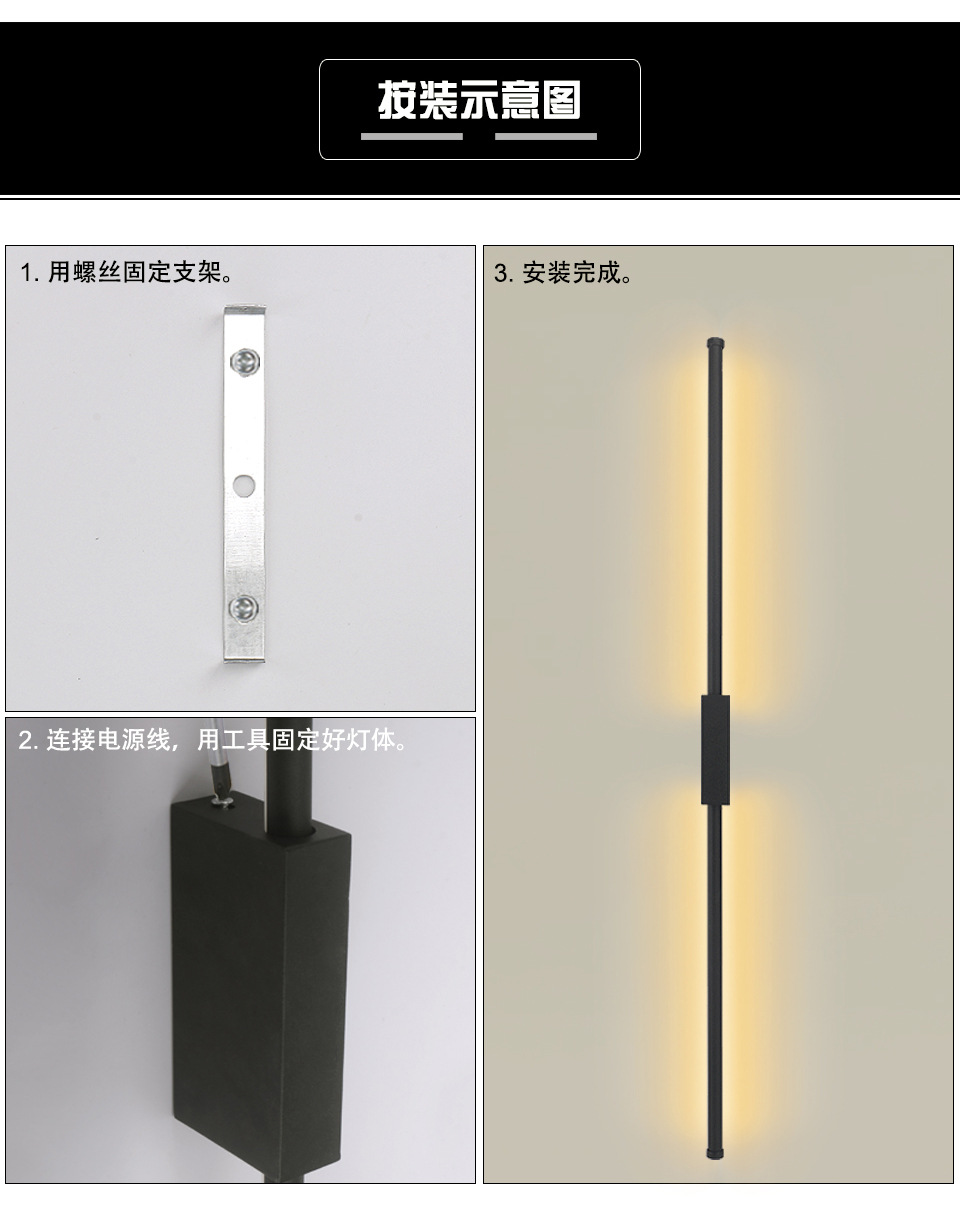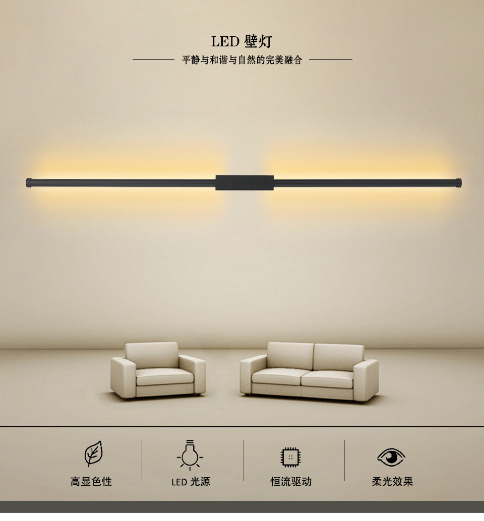 Interior LED minimalista lámpara de pared larga empaque dividido transfronterizo para sofá dormitorio sala de estar decoración del hogar