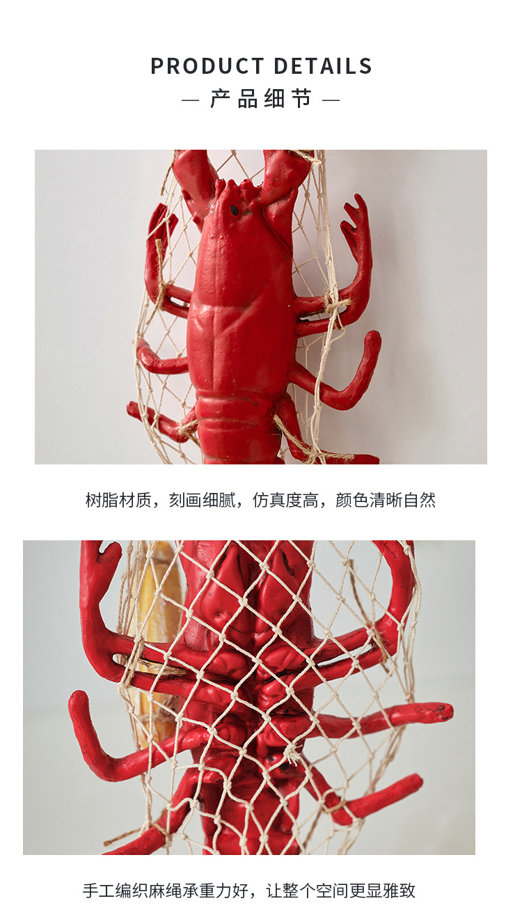 | Colores | Pequeño cangrejo de resina con red,Cangrejo de malla de cinta de resina mediana,Cangrejo grande con malla de resina,Pequeña langosta de resina con red.,Langosta grande de resina con red. |