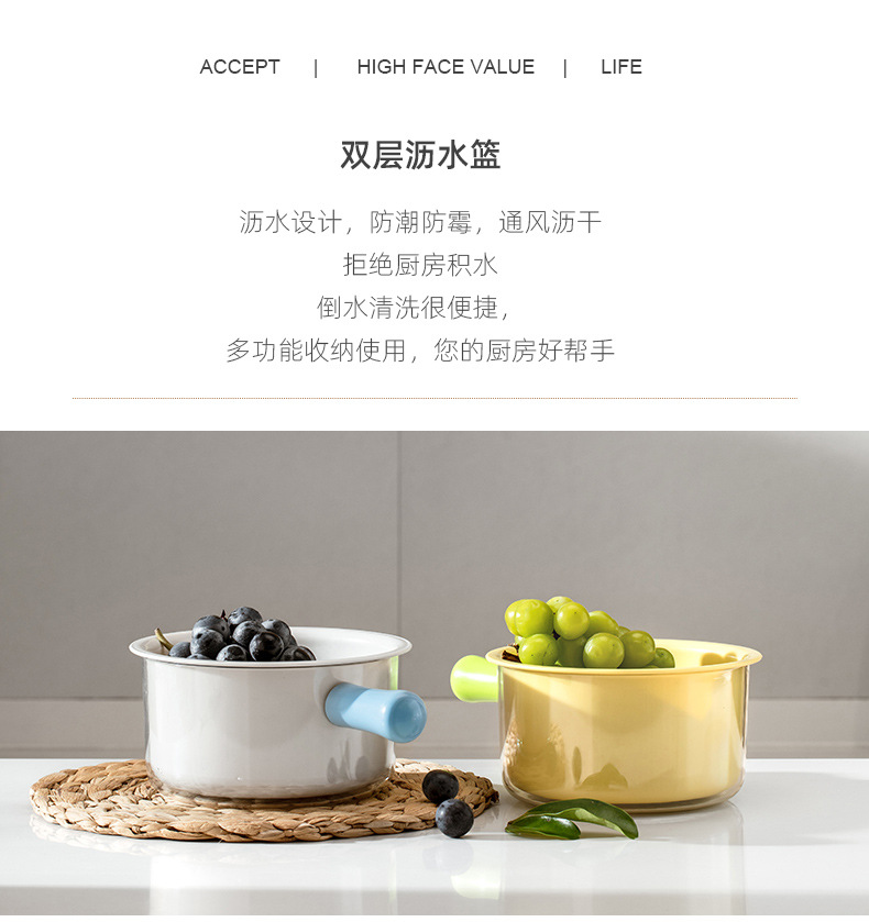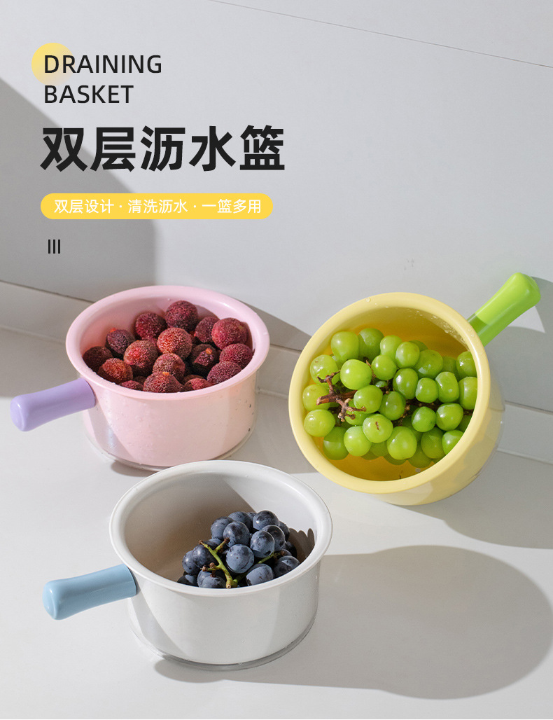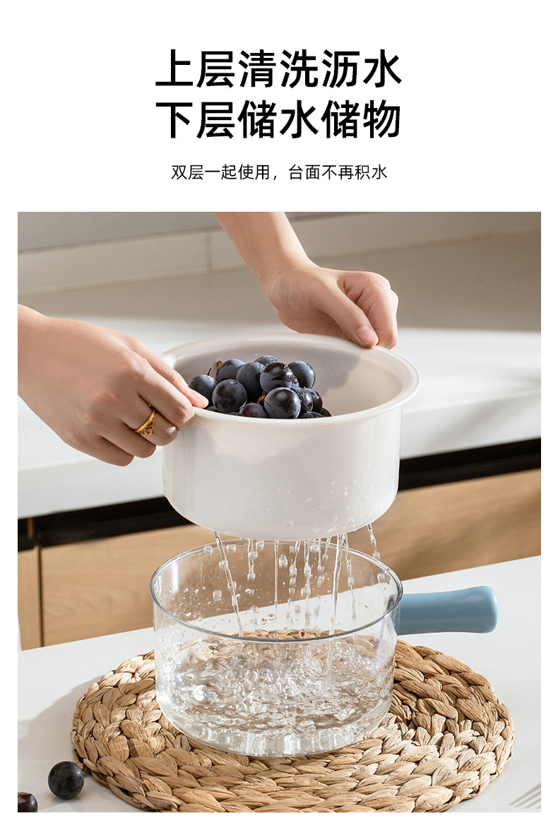 Cuchara de agua, lavabo de verduras, canasta de drenaje de doble capa, fregadero de cocina, canasta de filtro de residuos de alimentos separada, canasta de filtro de limpieza de frutas