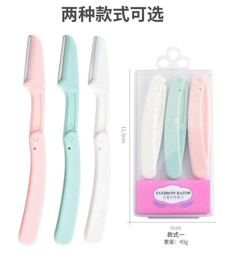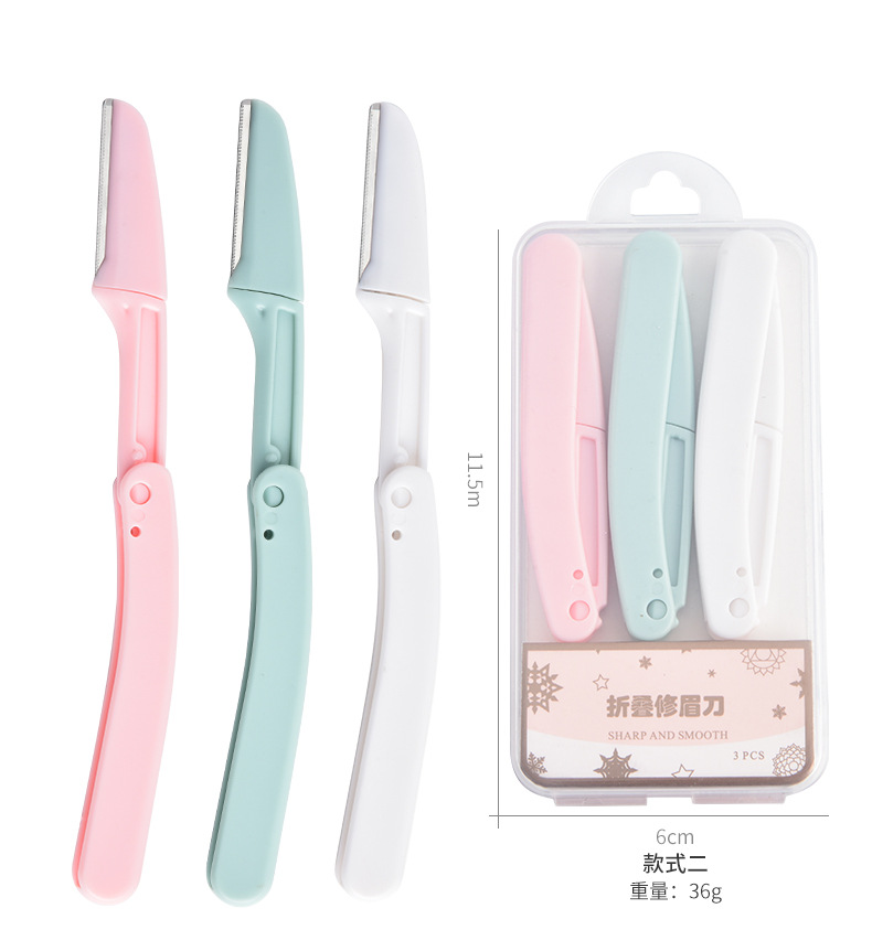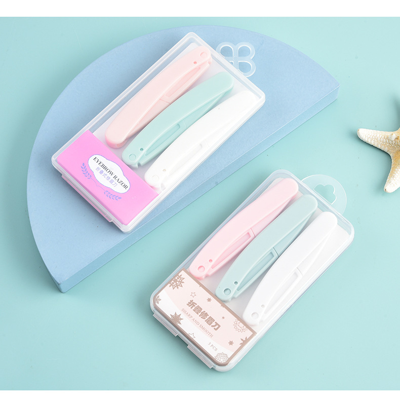 | Clasificación de colores | Juego de tres piezas, 1 rosa, 1 verde, 1 blanco, cuchillo de ceja curvada, 3 cajas, tijeras de ceja, embalaje de tarjetas de corte de cejas |
