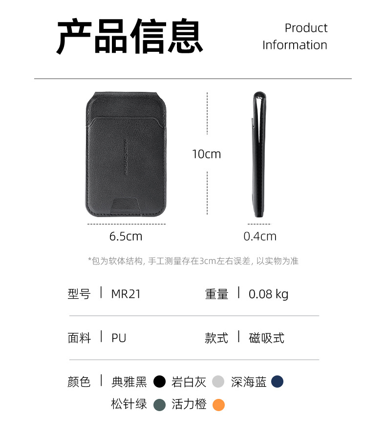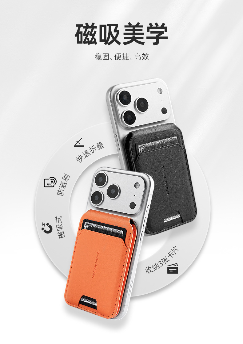 Marco Leiden ultra delgado Magsafe bolsa de tarjetas magnética para hombres soporte de teléfonos móviles magnético fuerte para bolso de cambio de Apple