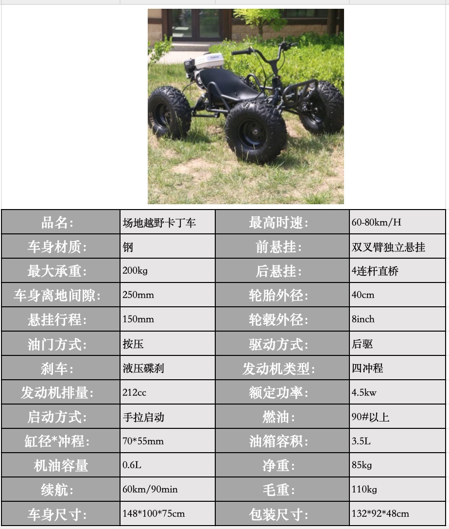 Cuatro tiempos 212 off-road kart 170F todo terreno utv cuatro ruedas ATV deriva ATV bicicleta de montaña
