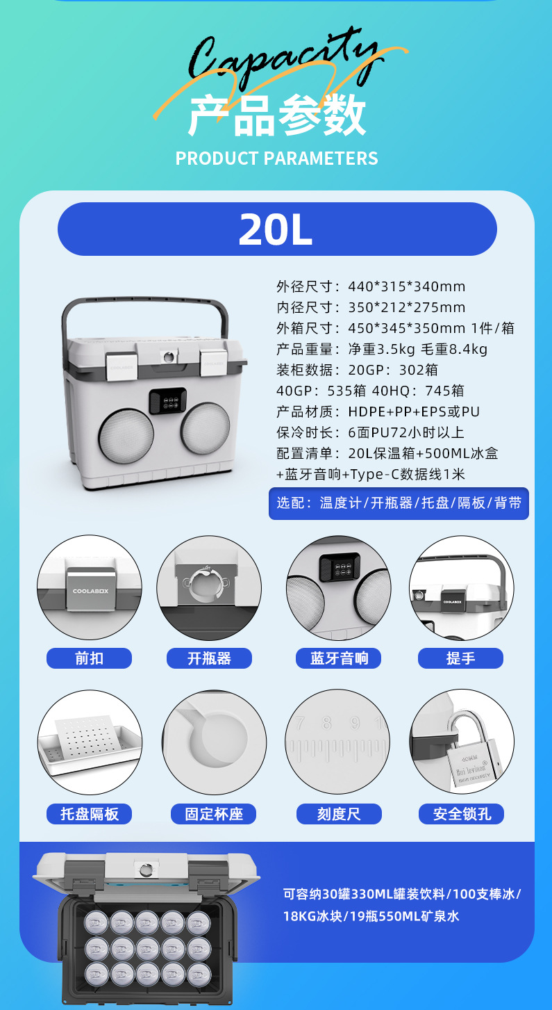 20L camping al aire libre picnic pesca bluetooth caja de sonido refrigeradora portátil refrigerador de bebidas