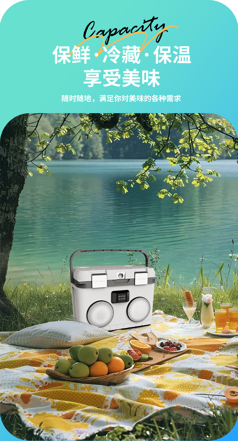 Camping al aire libre 15L bluetooth sonido picnic grupo construido incubadora portátil de alimentos y bebidas refrigerador refrigerador