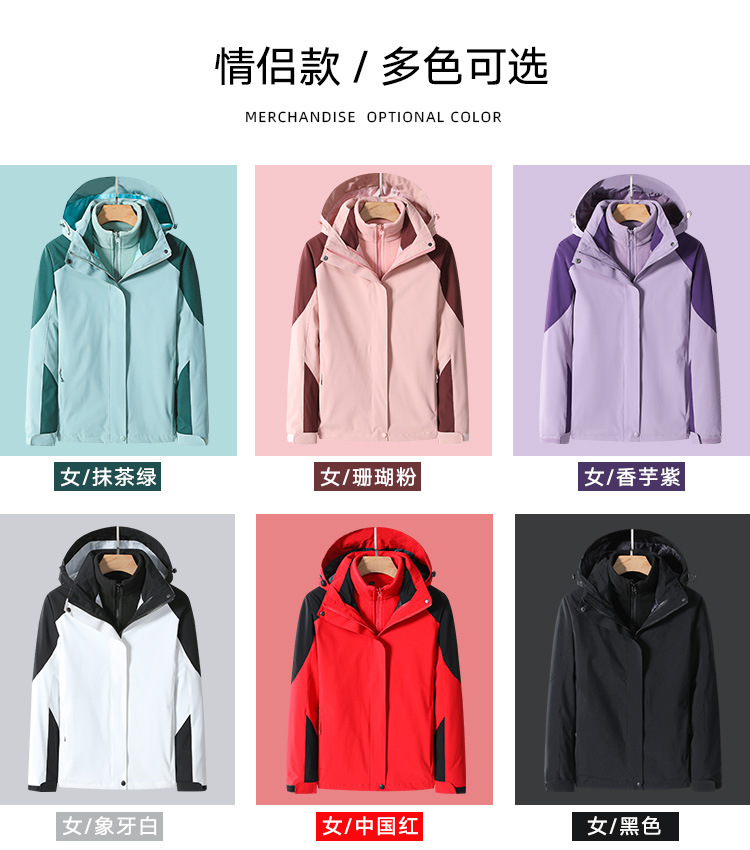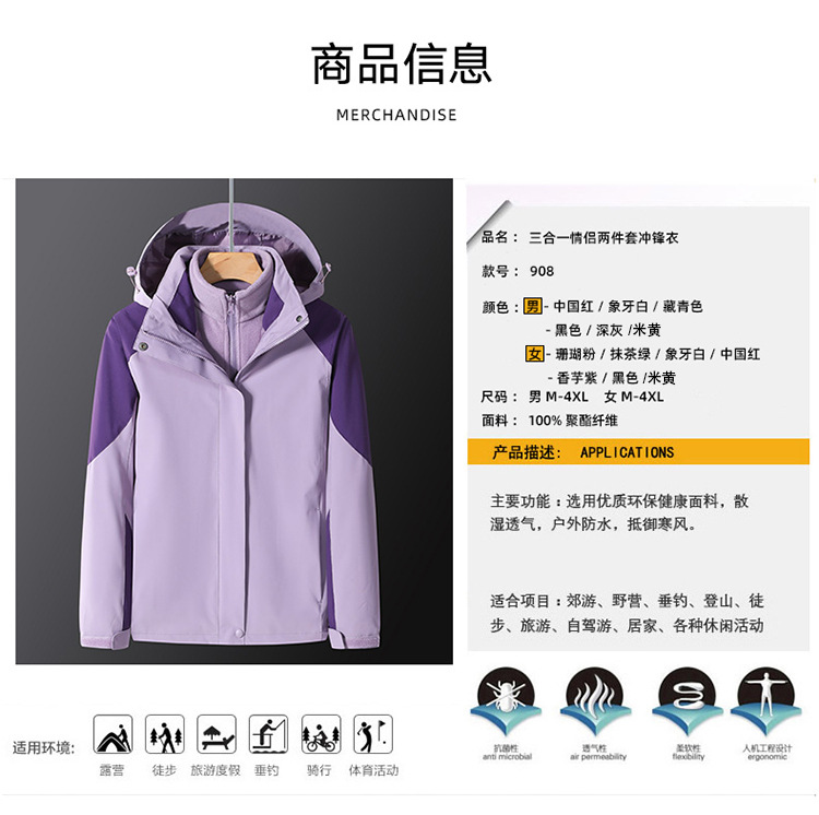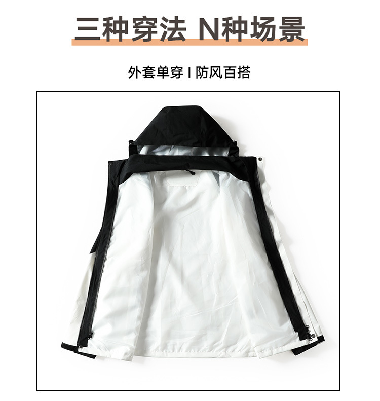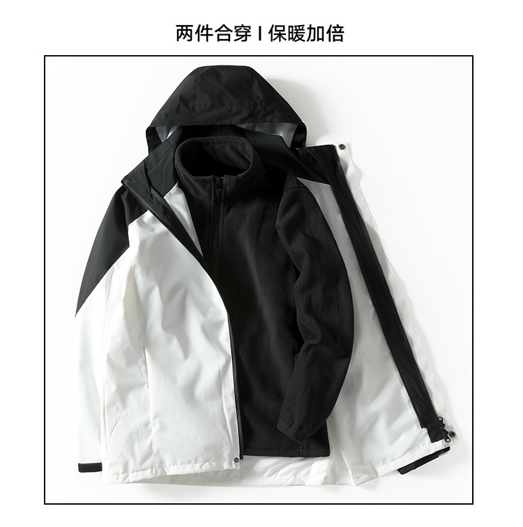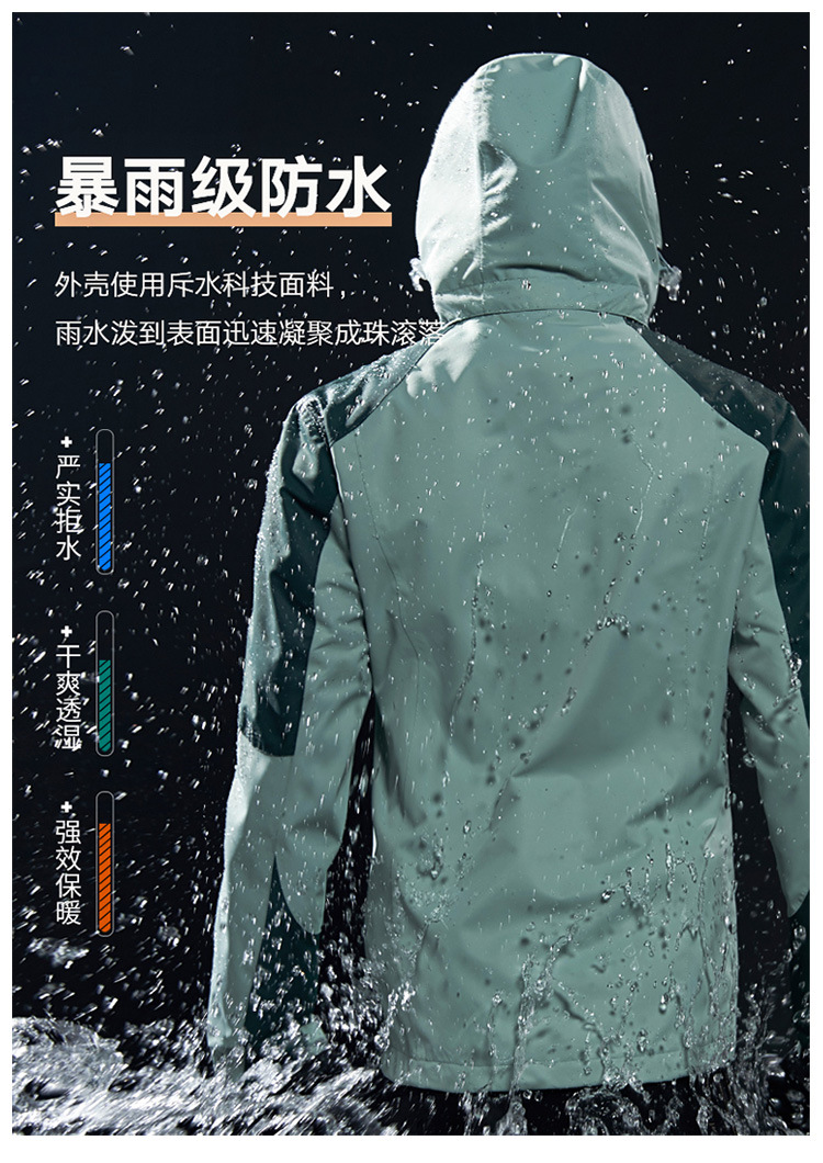 Fábrica directa al aire libre tres en uno vestir de asalto otoño y invierno para hombres y mujeres a prueba de viento a prueba de agua desmontable chaqueta de calor interior