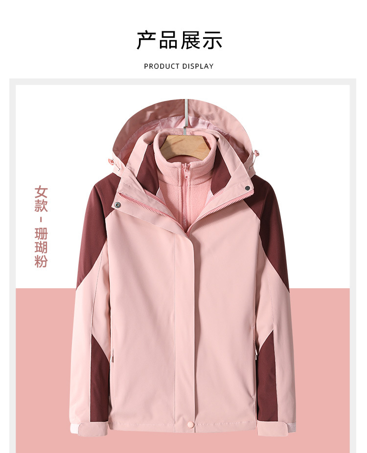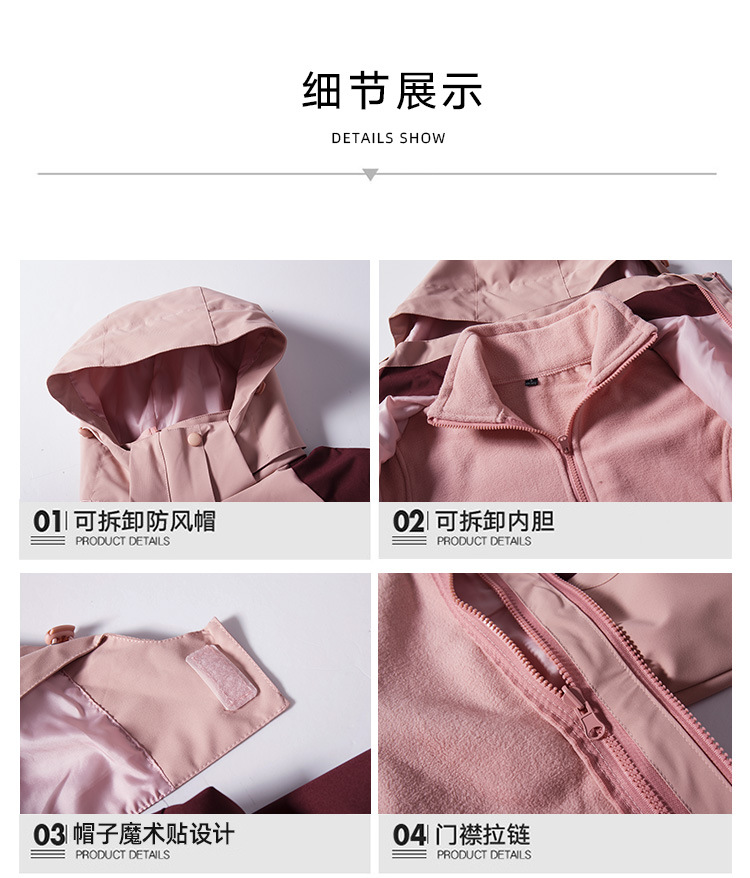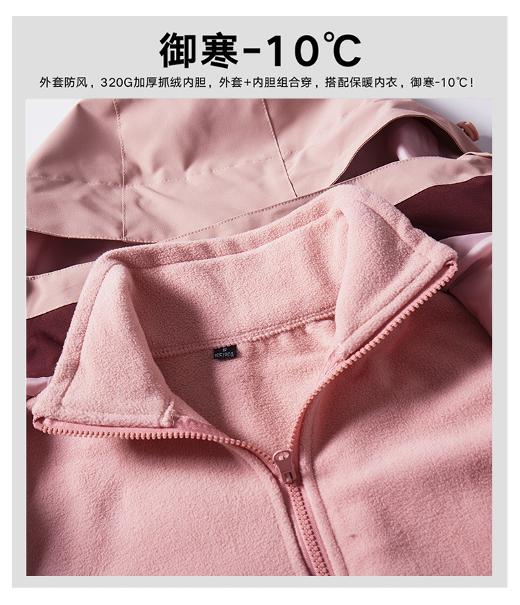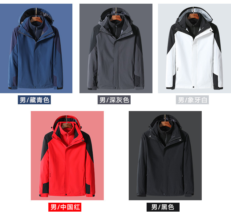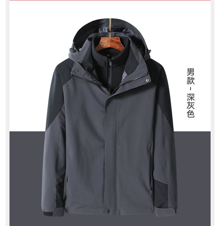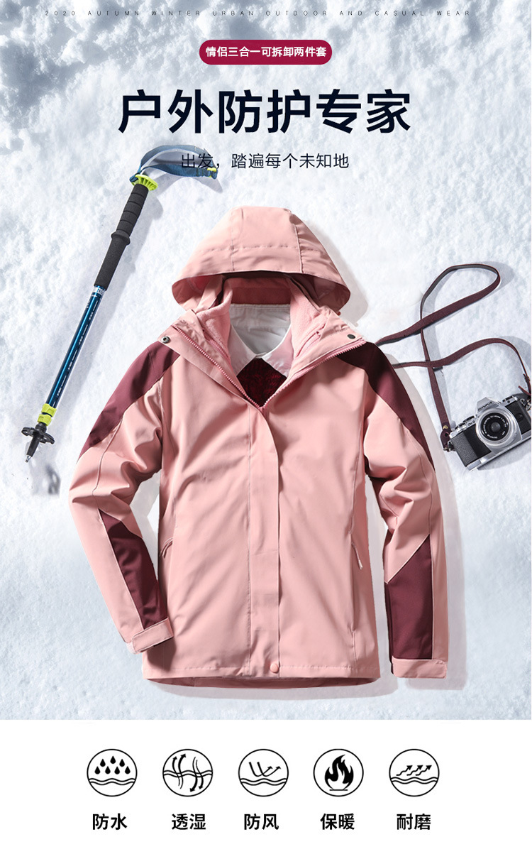 Fábrica directa al aire libre tres en uno vestir de asalto otoño y invierno para hombres y mujeres a prueba de viento a prueba de agua desmontable chaqueta de calor interior