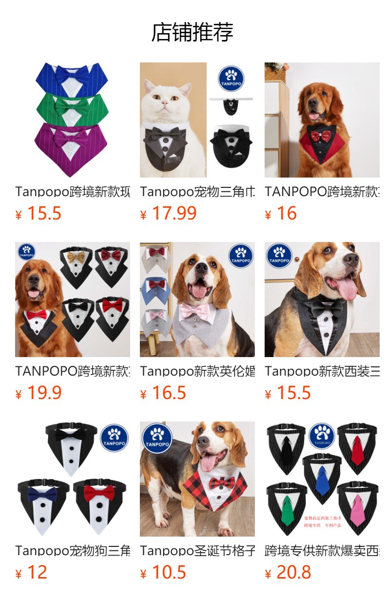El fabricante TANPOPO tiene un amplio stock de nuevos trajes para mascotas de caballero británico transfronterizos y bandanas para bodas.
