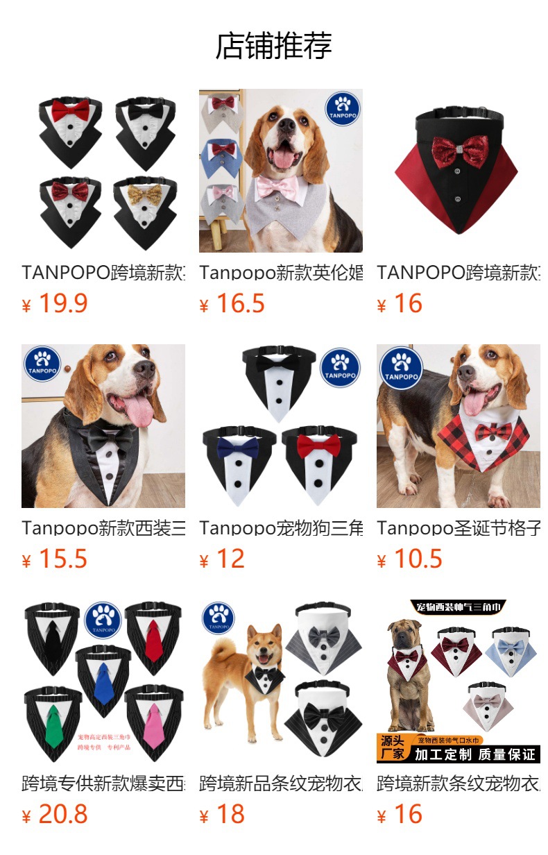 TANPOPO nuevo producto transfronterizo perro grande estilo británico traje de boda collar de perro toalla de saliva para mascotas toalla triangular de perro