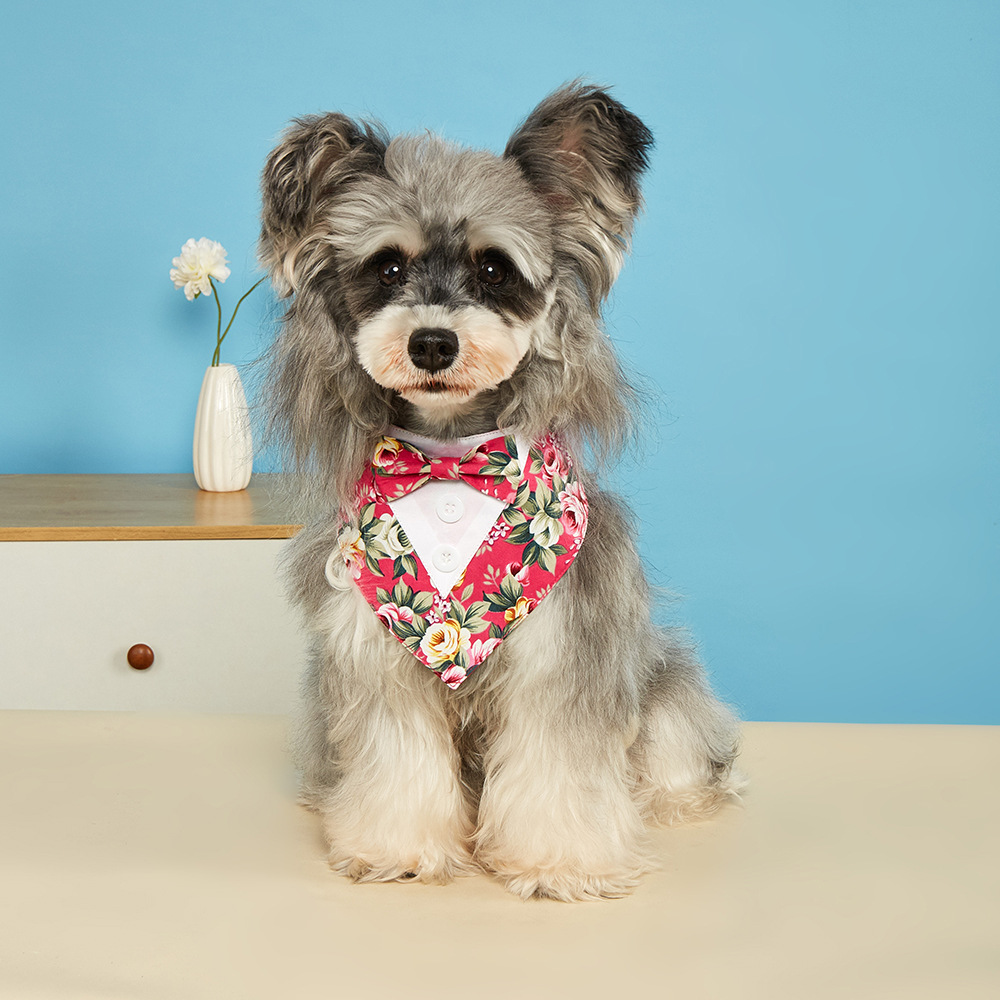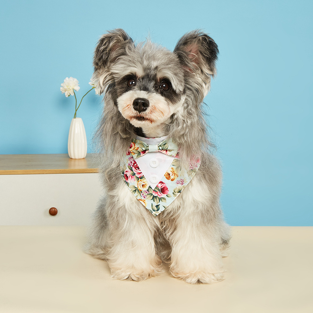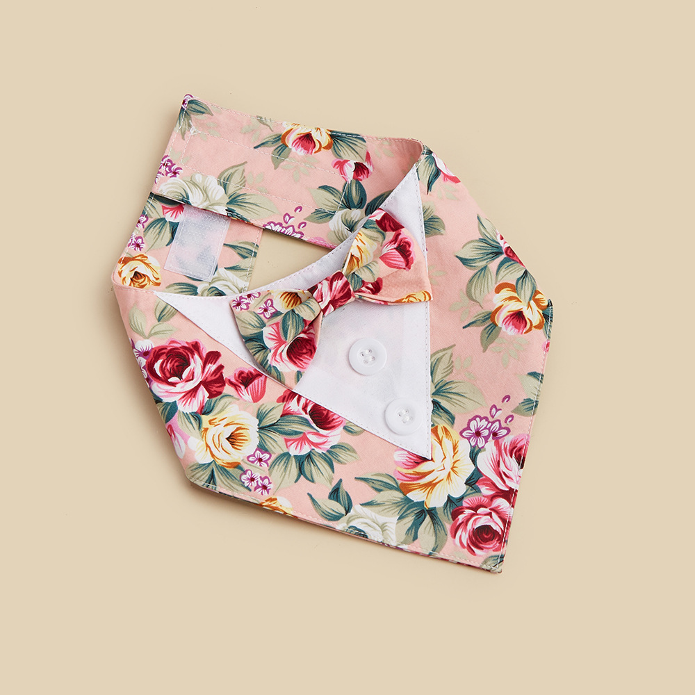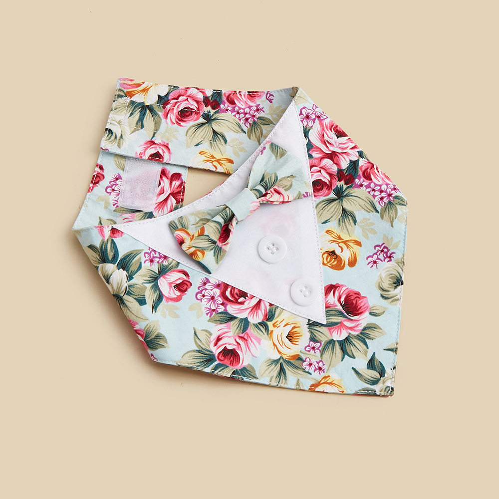 TANPOPO Traje de flores nuevo transfronterizo Toalla de saliva para mascotas Toalla triangular para mascotas Velcro Bufanda para perros