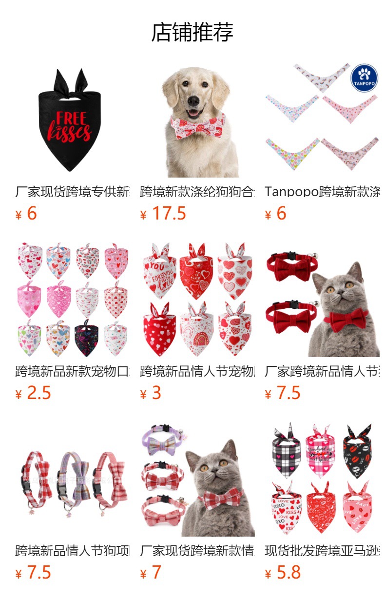 TANPOPO transfronterizo nuevo amor adorable mascota fiesta decoración traje mascota toalla de saliva bufandas triangulares