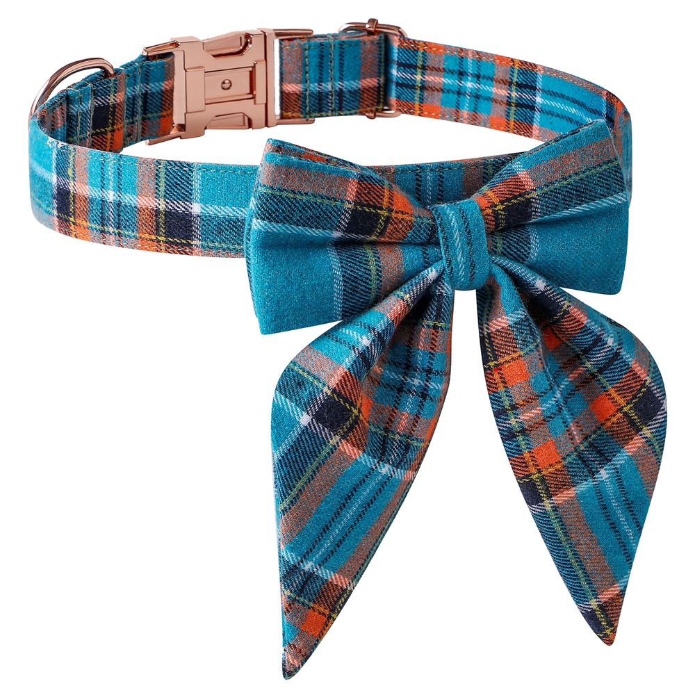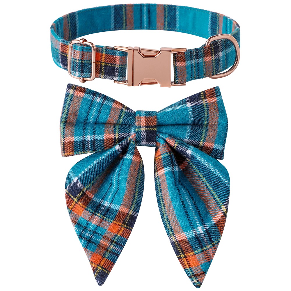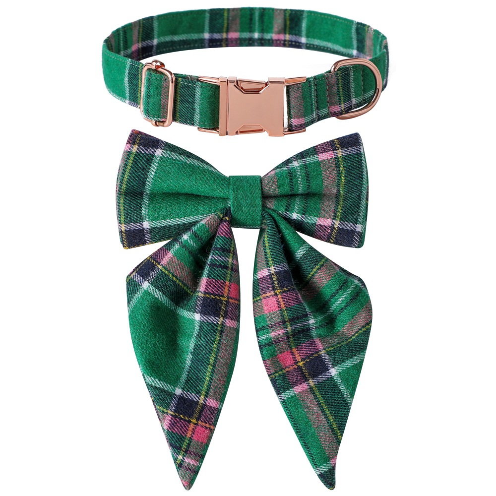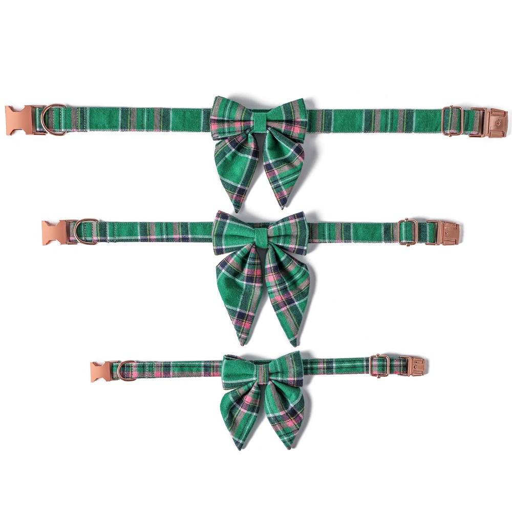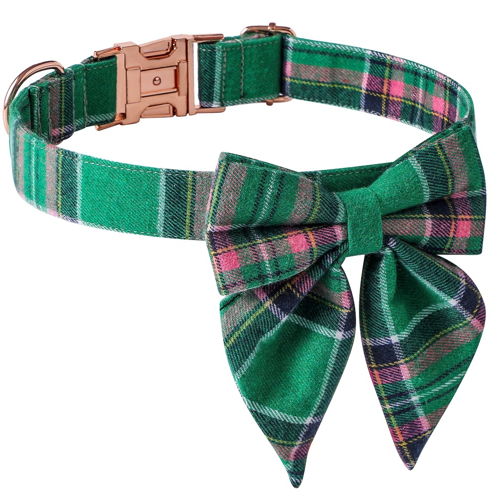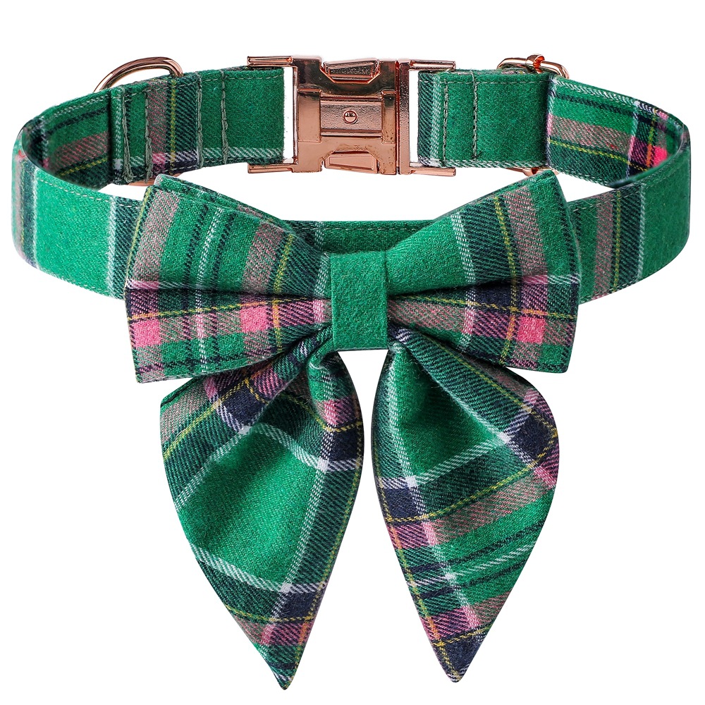 Fabricantes al por mayor collar de mascotas transfronterizas estilo británico cuadrilátero de Navidad oro rosa collar de botón arco