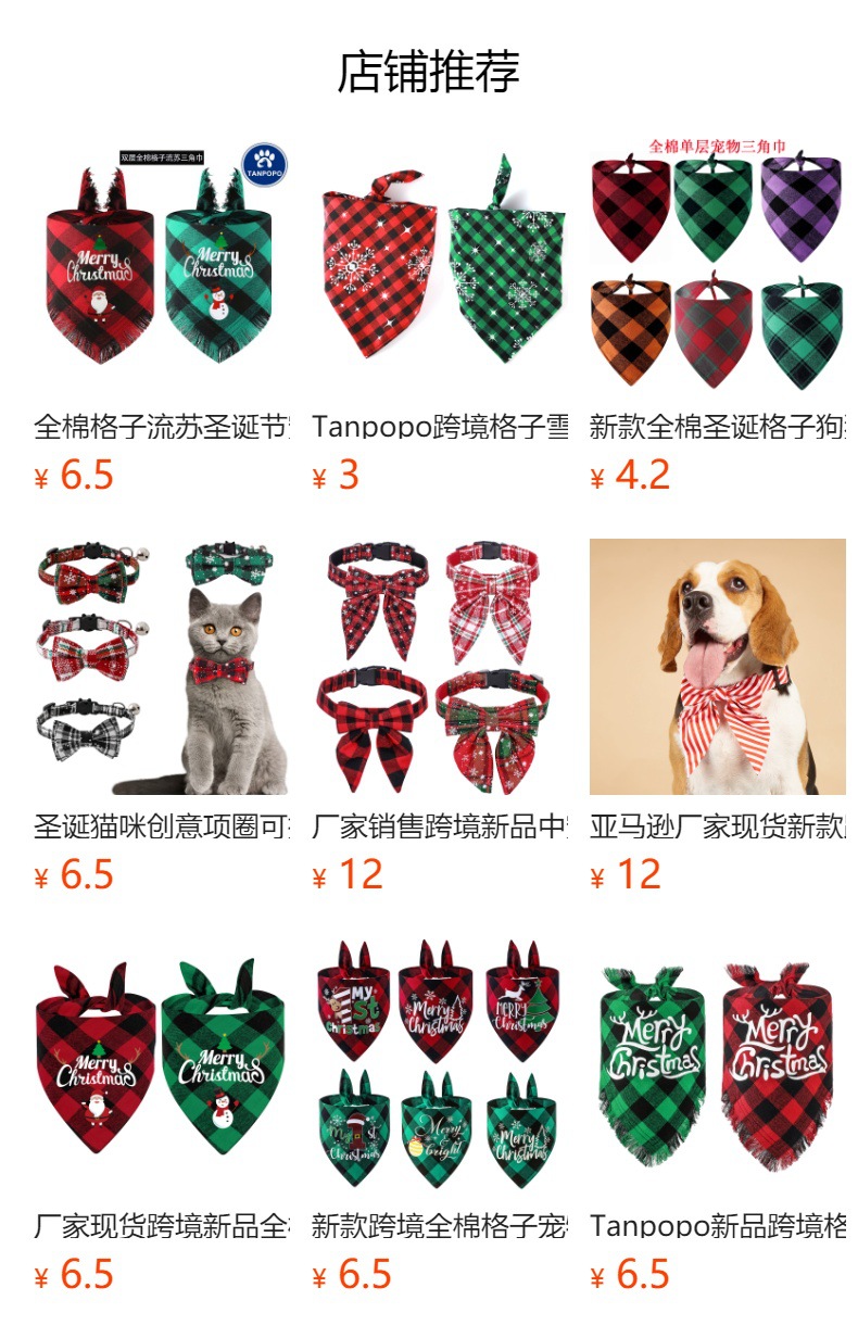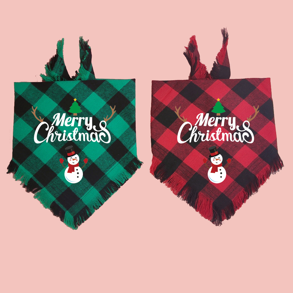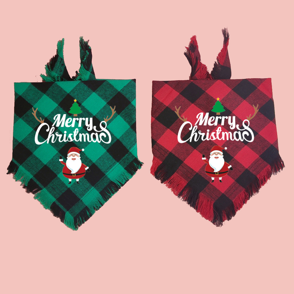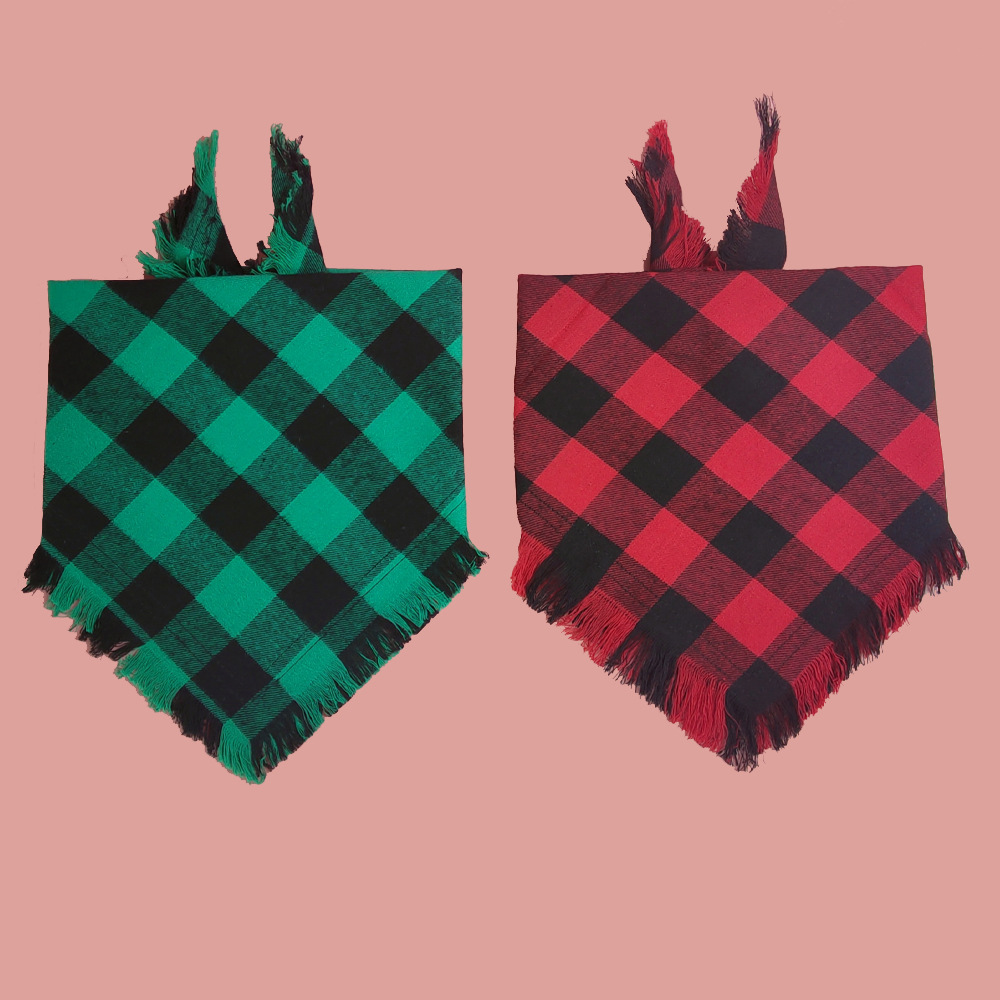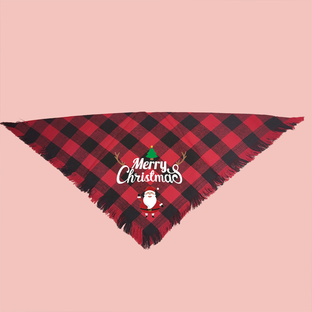 A cuadros borla regalo de Navidad mascota perro toalla triángulo mascota perro saliva toalla perro bufanda decoración al por mayor
