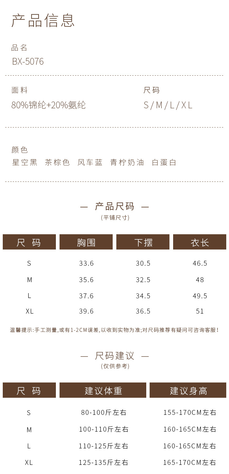 | Color | BX - 5076 té marrón, BX - 5076 cielo estrellado negro, BX - 5076 molino de viento azul, BX - 5076 crema de limón, BX - 5076 albúmina |