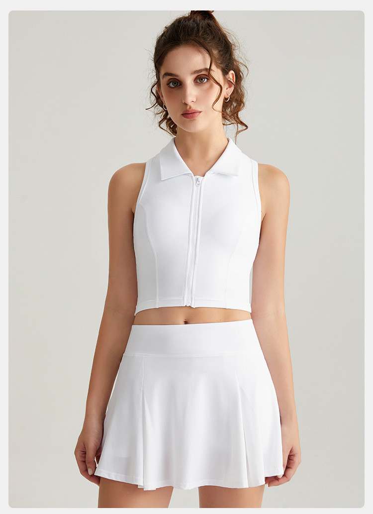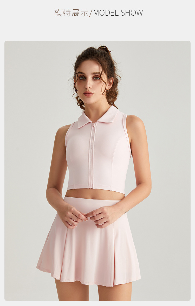 El nuevo chaleco de yoga con cuello POLO de Weiman, almohadilla para el pecho para mujer, una pieza, cremallera frontal, ropa de yoga de alta gama, top