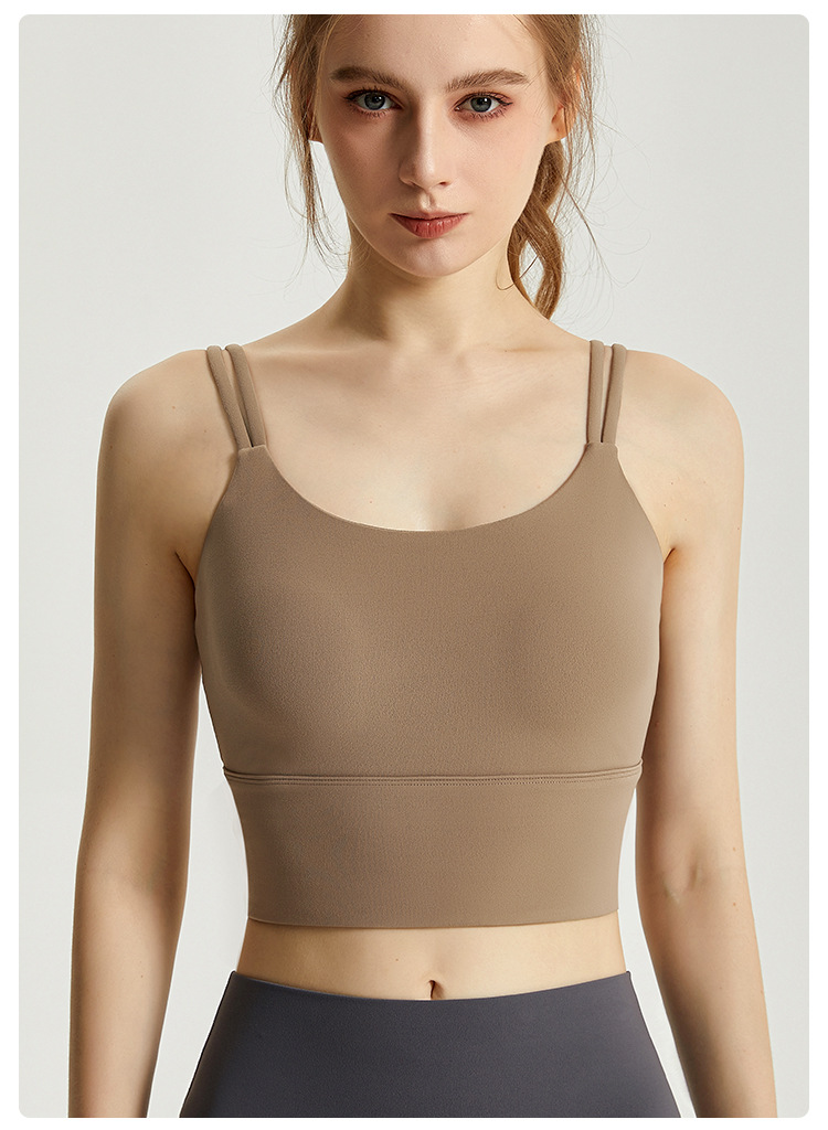Top deportivo Weiman con tirantes finos integrados, a prueba de golpes, agradable al tacto, sujetador deportivo sin espalda con tirantes.