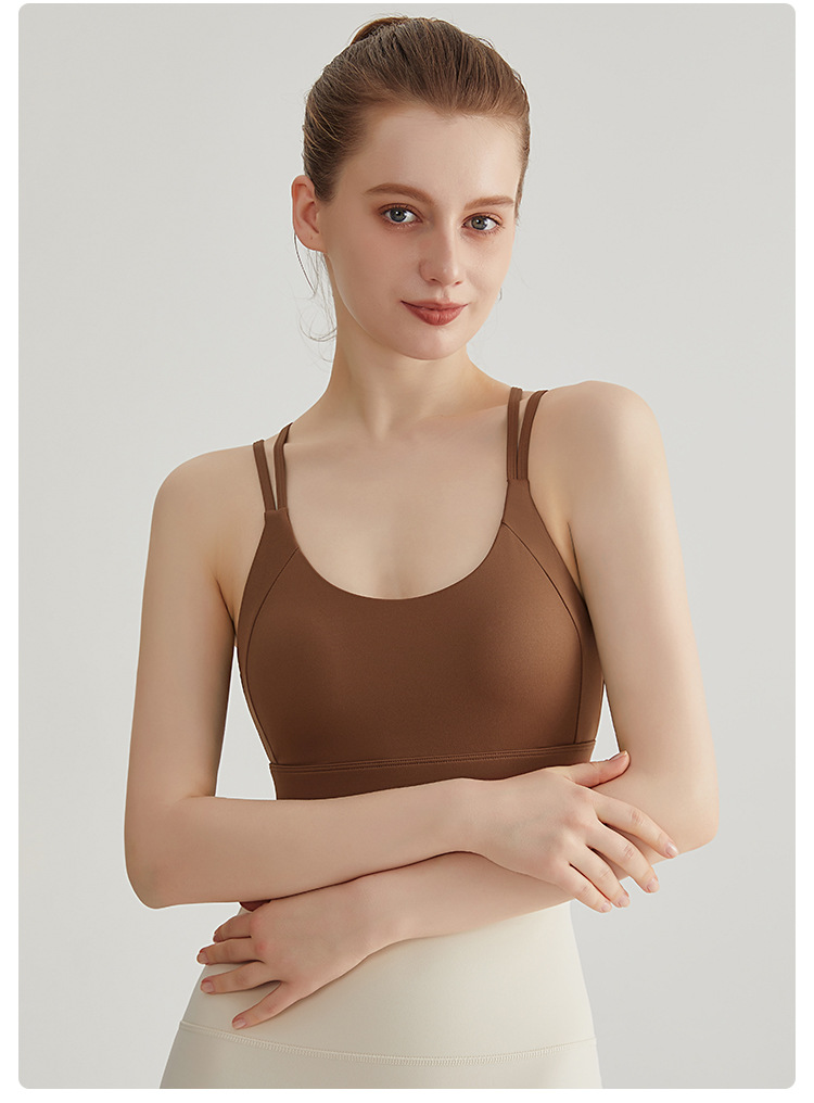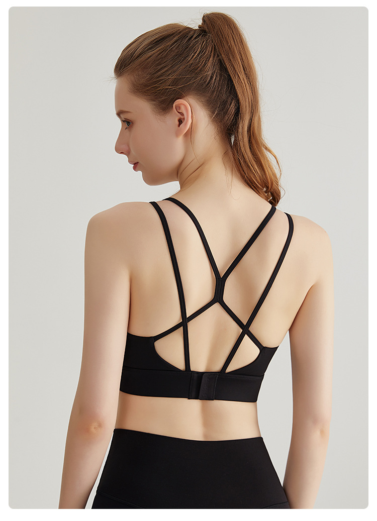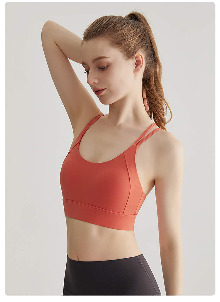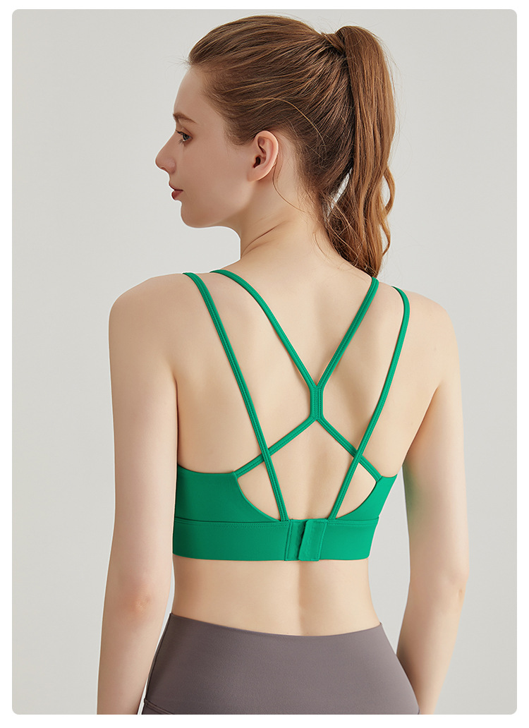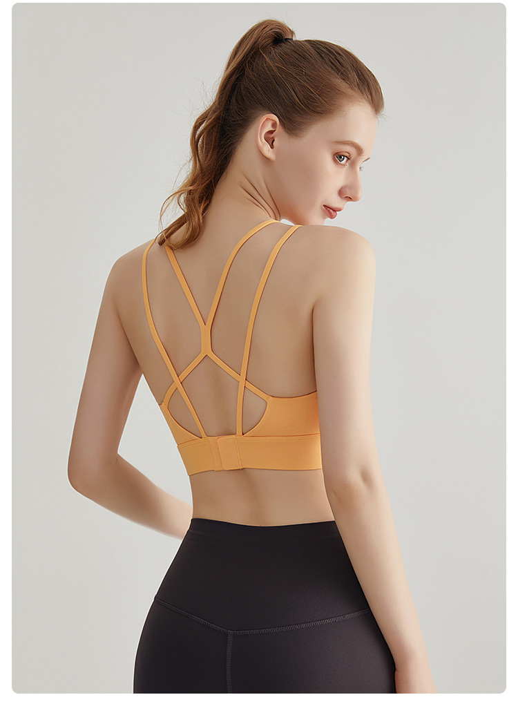 LAHN nuevo chaleco de yoga sexy, taza fija, delgado cruzado, cinturón de hombro delgado, ropa interior deportiva para mujeres