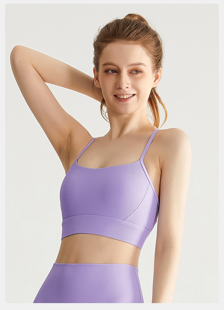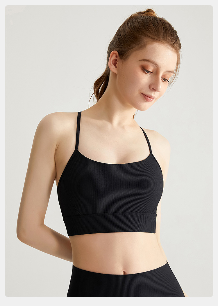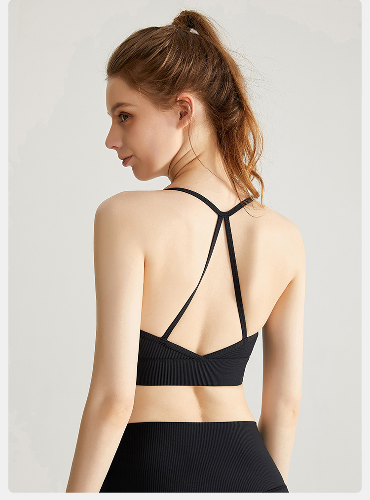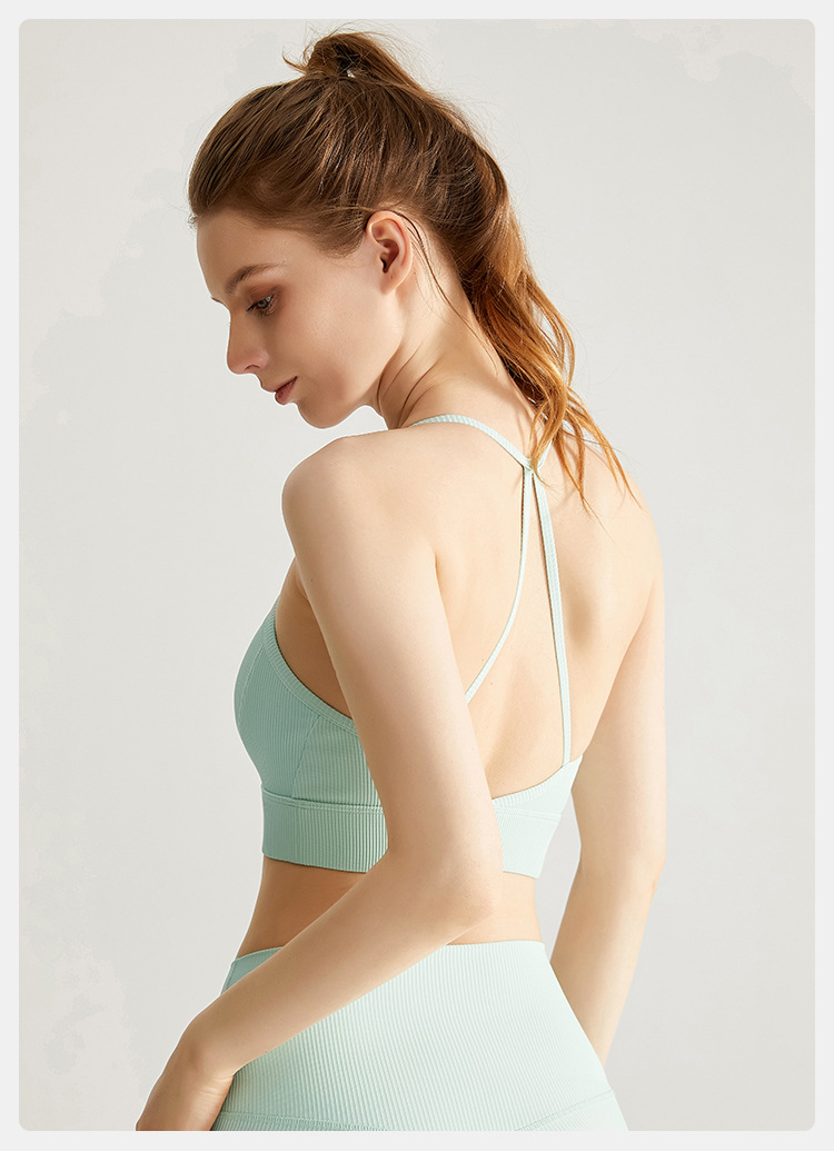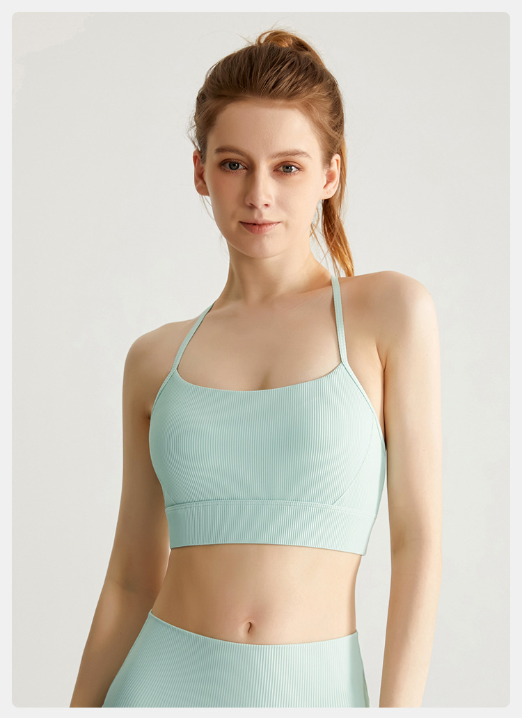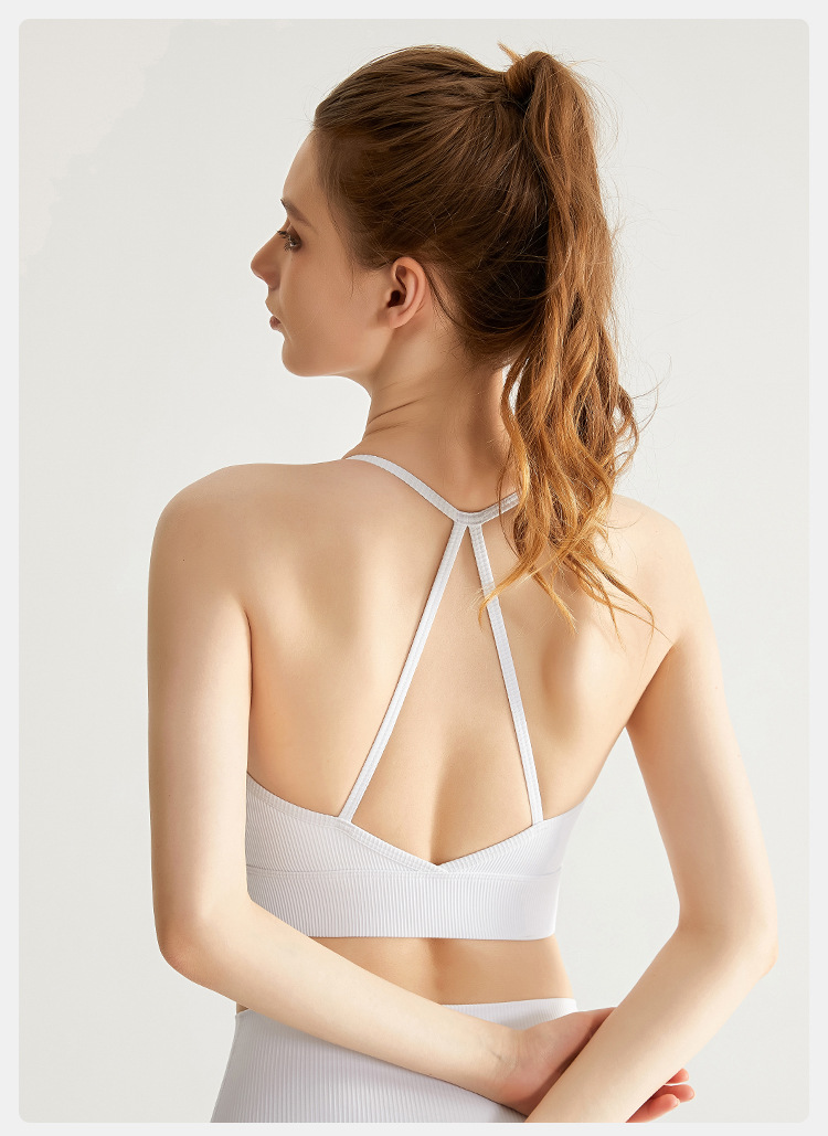 Sujetador deportivo LAHN con cuello halter y copa integrada, soporte medio, tirantes finos acanalados, hermoso diseño de espalda, almohadillas fijas para el pecho, adecuado para yoga y ropa exterior.