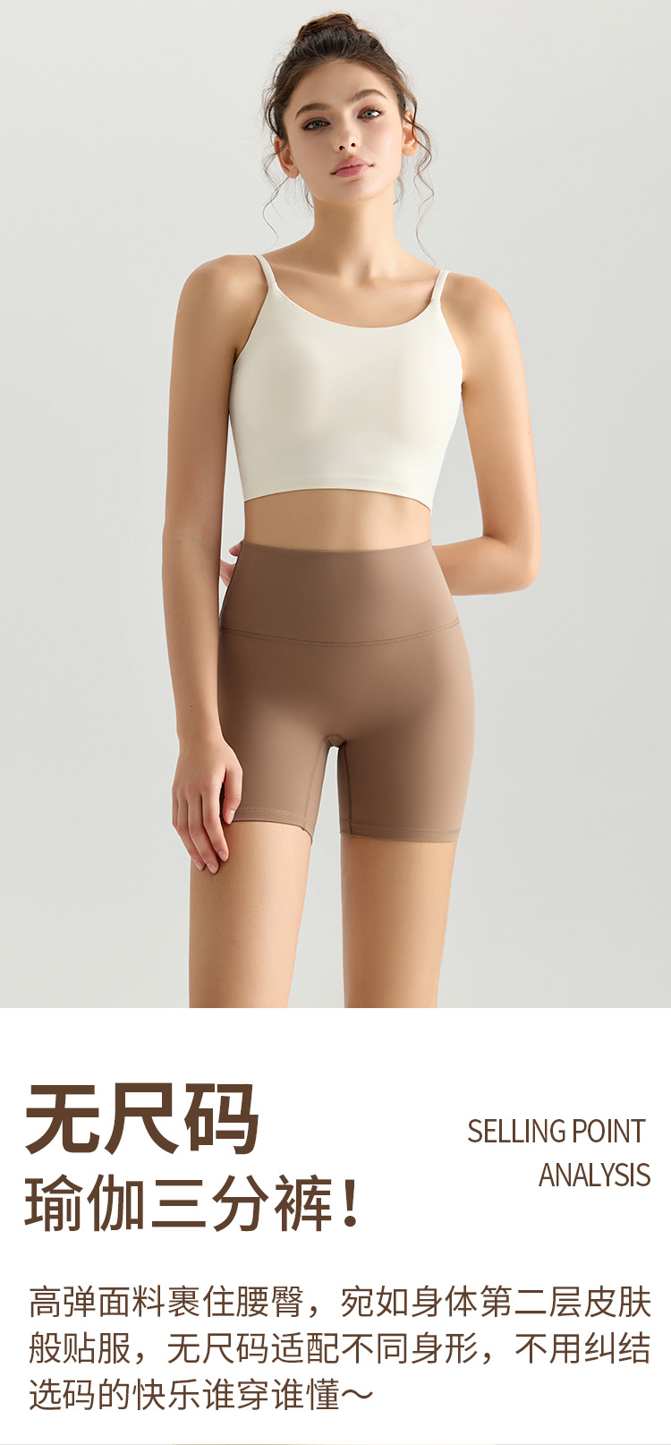 Weiman pantalones cortos de yoga de tres puntos sin talla, pantalones cortos de cintura alta para realzar la cadera, ropa interior antibacteriana sin sentido de la nube, pantalones de fitness de tres puntos para mujer