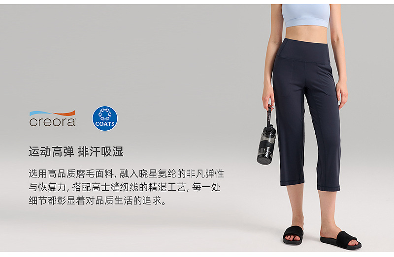 Pantalones deportivos de pierna ancha para mujer pantalones de yoga lulu de fitness de cintura alta casuales rectos, transpirables, de secado rápido, pantalones sueltos de ocho puntos 23"