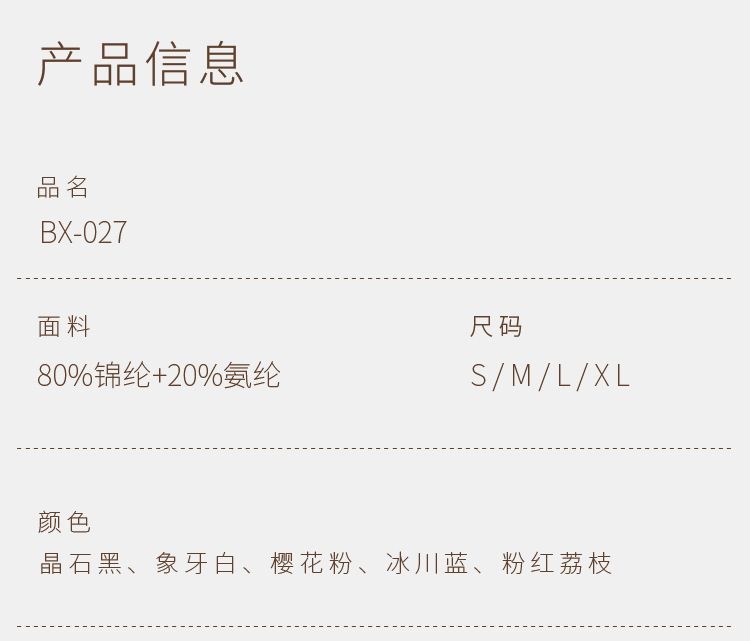 | Color | BX - 027h barita negra, BX - 027h marfil blanco, BX - 027h polen de cerezo, BX - 027h glaciar azul, BX - 027h litchi rosa |