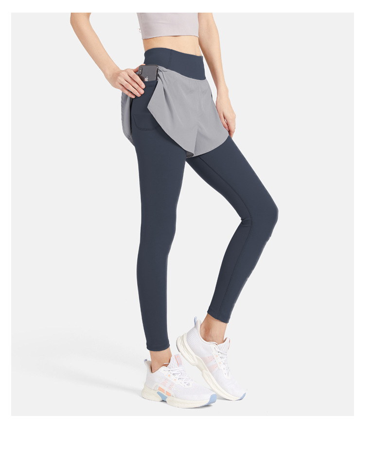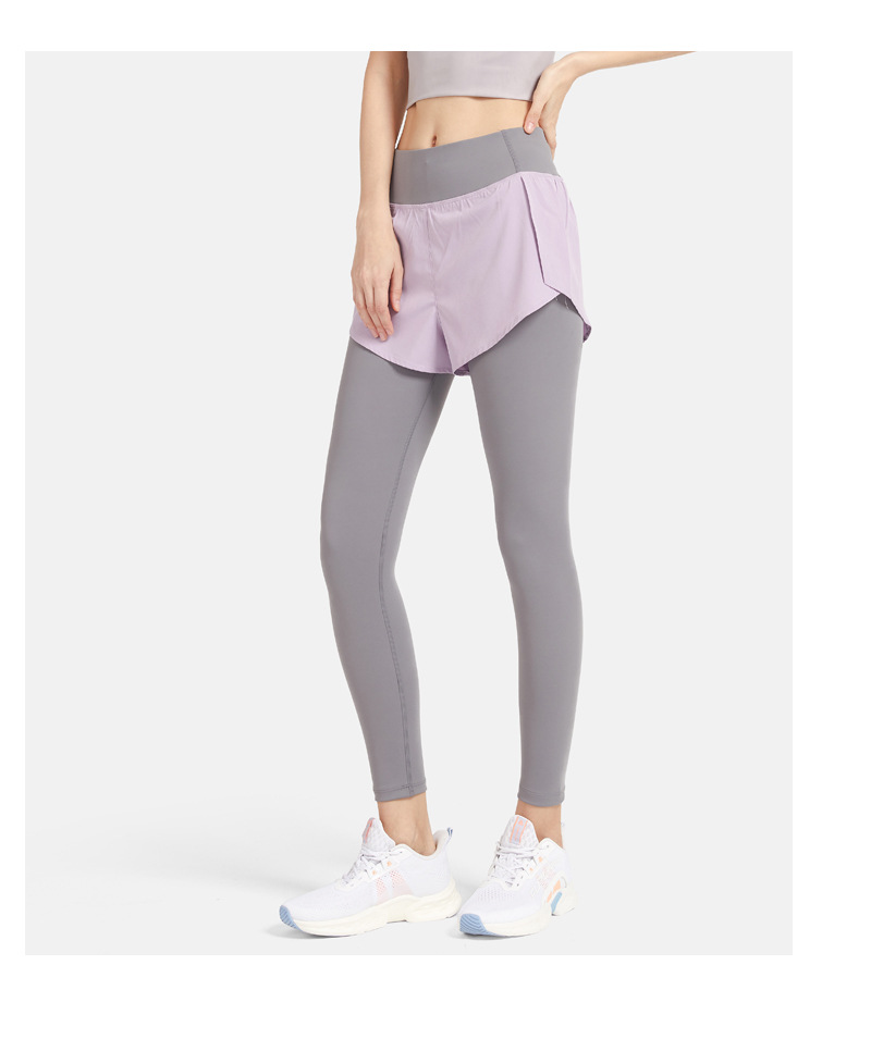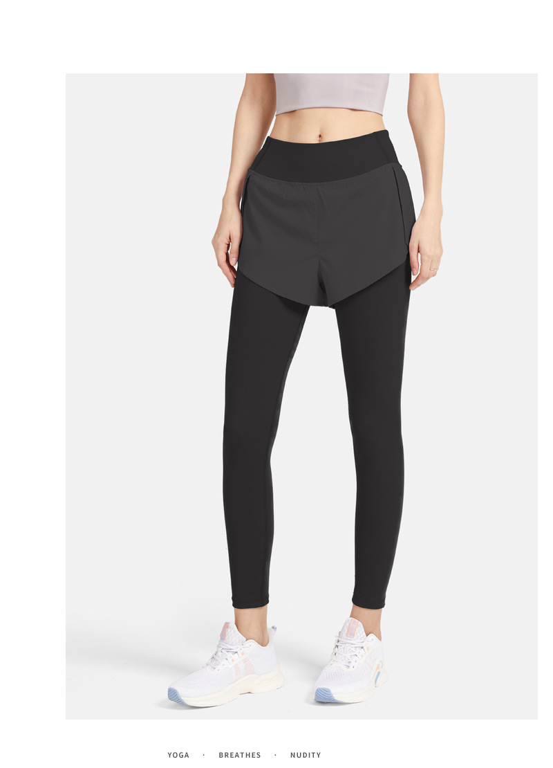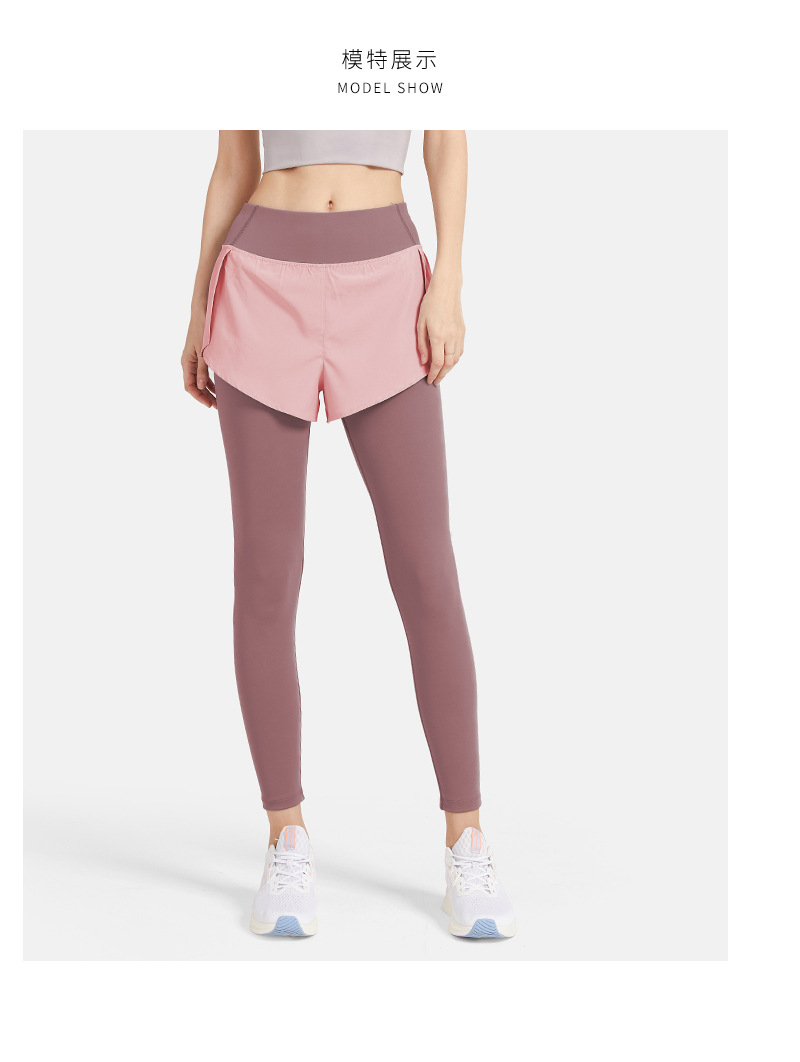 Desnudo falso de dos piezas pantalones de fitness cintura alta de las mujeres Levantamiento de cadera apretado flaco yoga pantalones corriendo estiramiento deportes pantalones recortados