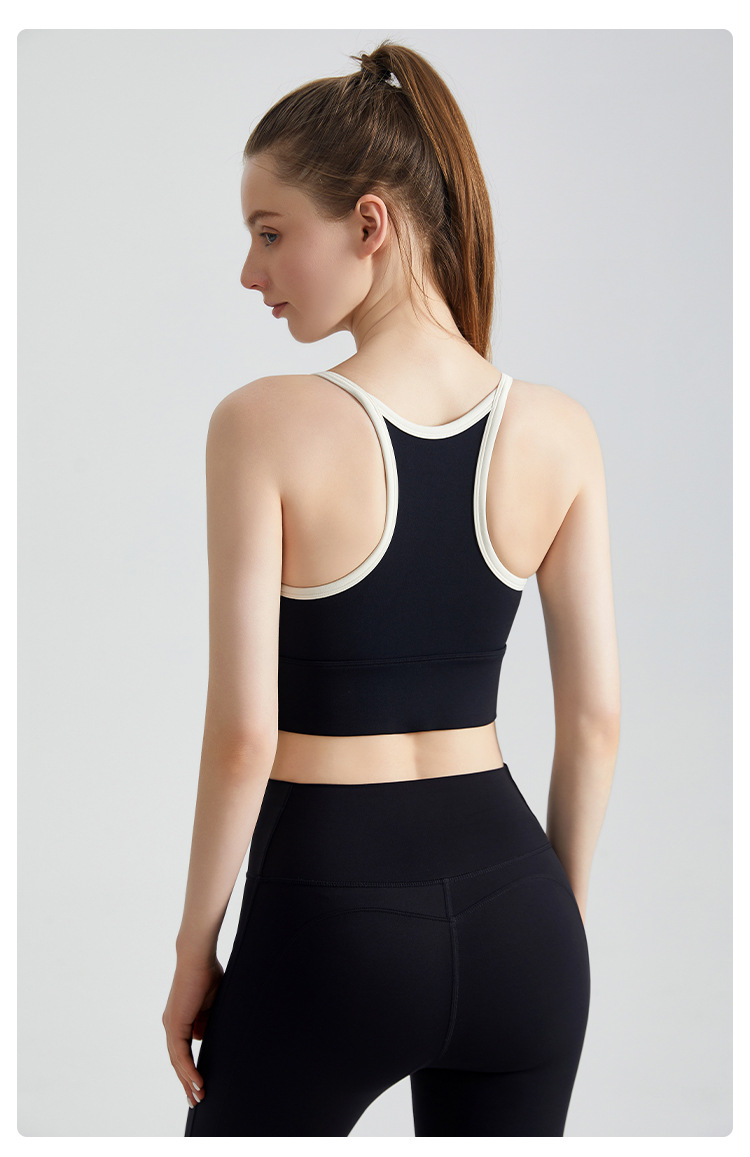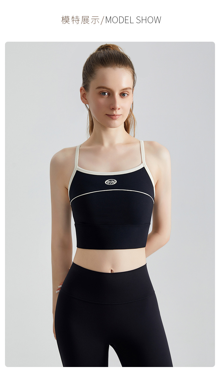 Nuevo sujetador deportivo LAHN con bloques de color, copa integrada, a prueba de golpes, antiexposición, espalda hermosa, tirantes finos, sujetador de yoga