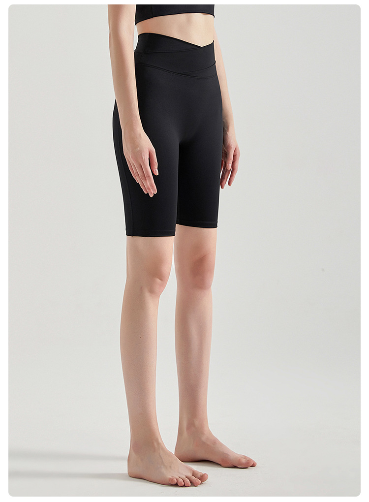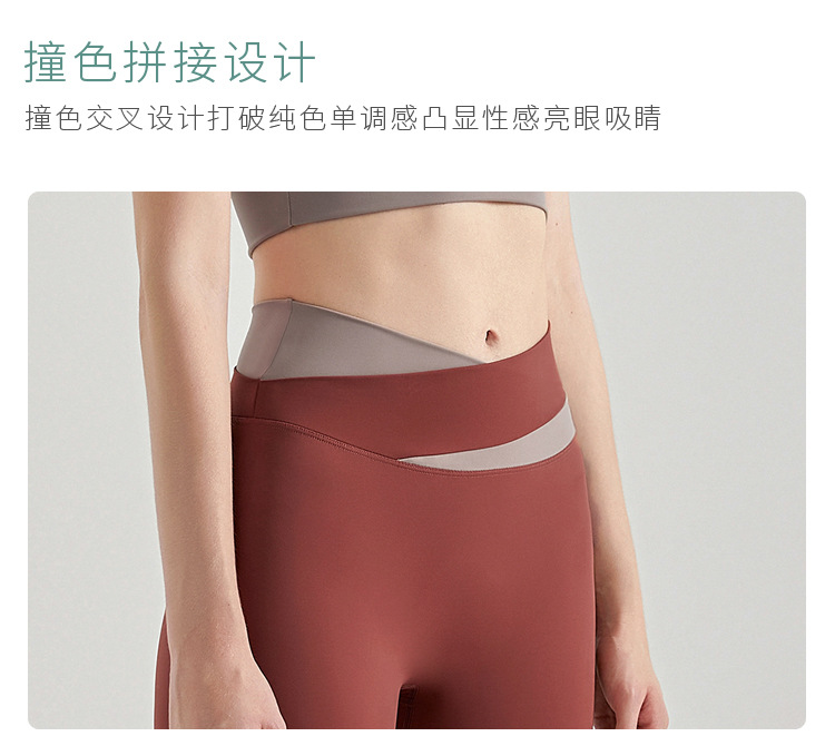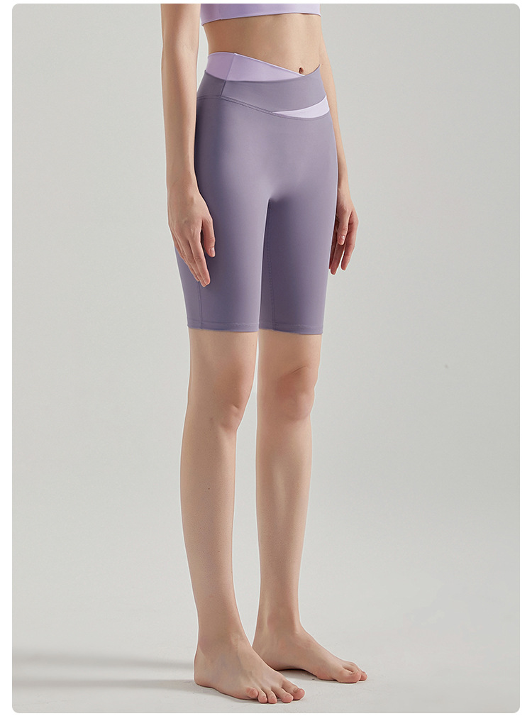 Pantalones cortos de yoga LAHN para mujer, bloques de color, cintura cruzada, cintura alta, levantamiento de glúteos, sin costuras, ajustados, hasta media pierna, fitness.
