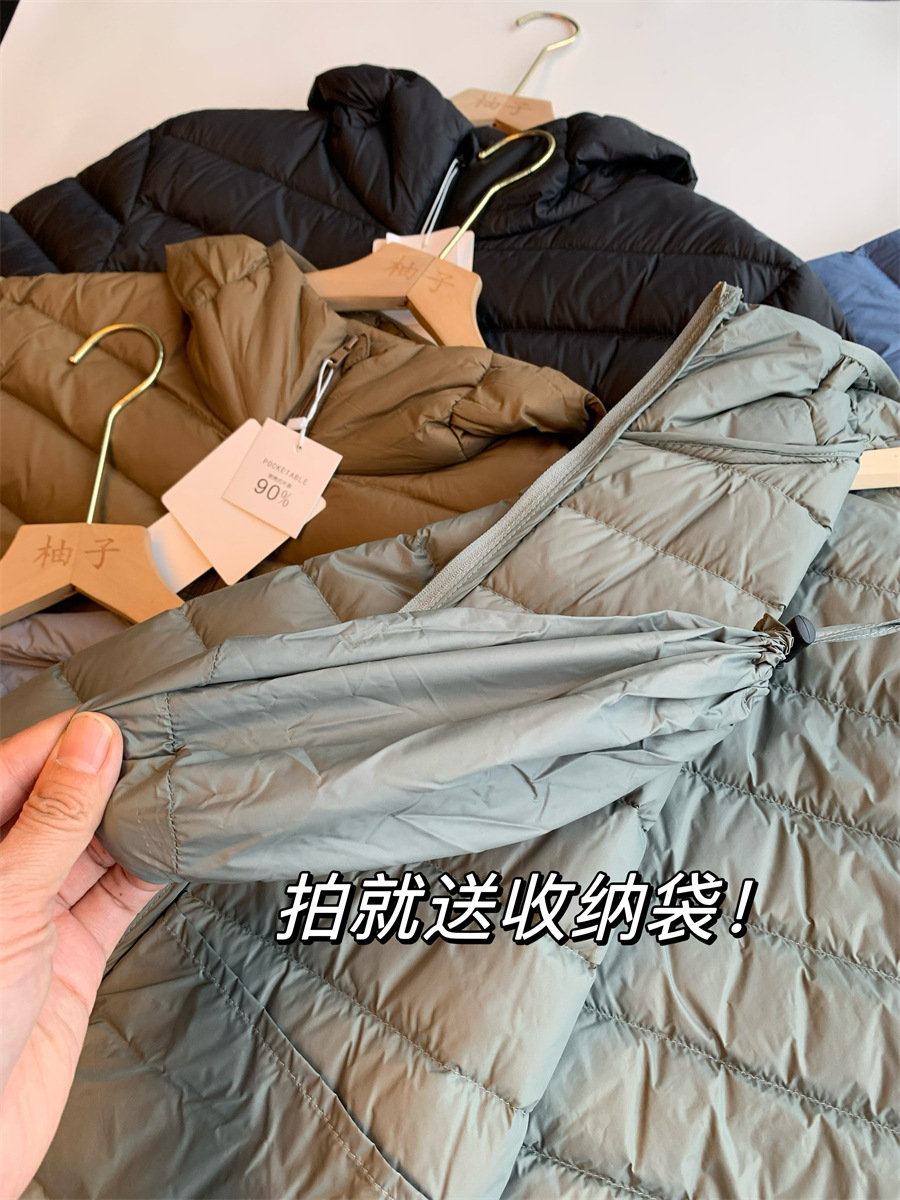 [90 plumón de pato] Chaqueta de plumón con capucha ligera y cálida para hombre 2024 invierno nuevo estilo para hombre con plumón exterior delgado