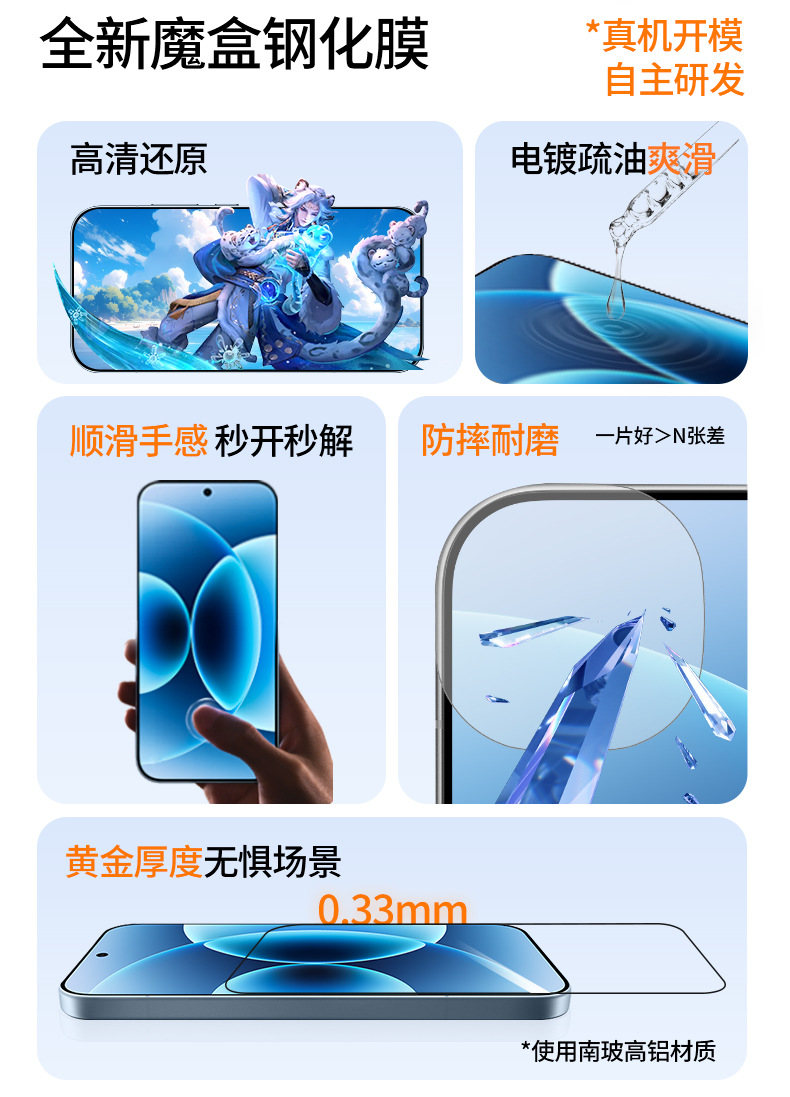 | Características de la película | HD, a prueba de arañazos, a prueba de polvo, a prueba de huellas dactilares, a prueba de caídas, caja adhesiva de segundo |