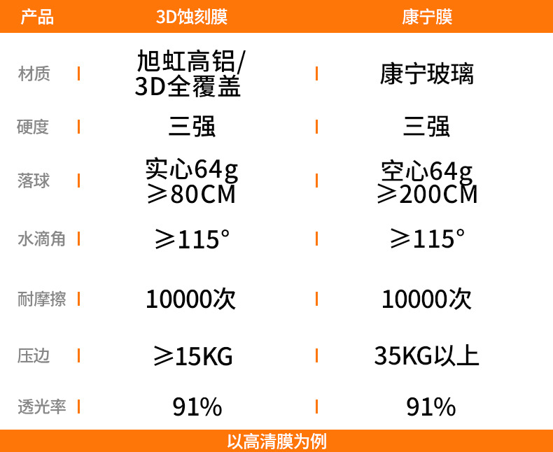 | Características de la película | Alta definición, a prueba de explosiones, a prueba de polvo, a prueba de caídas, a prueba de voyeurismo, no pantalla completa, caja de pegatinas de segundos |