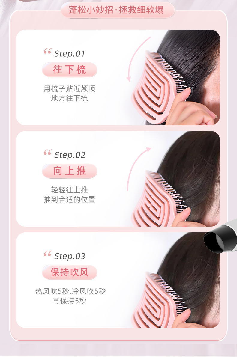 Peine de peinado de costillas Peine de bolsa de aire de peluquería al por mayor parte superior del cráneo alto, bobina de mosquito esponjosa, peine de curva grande, cojín de aire hueco, peine de masaje