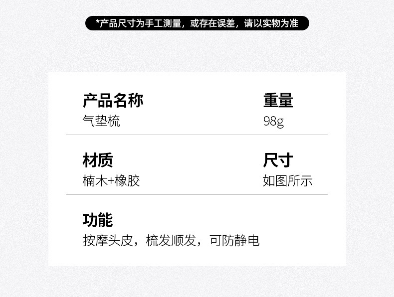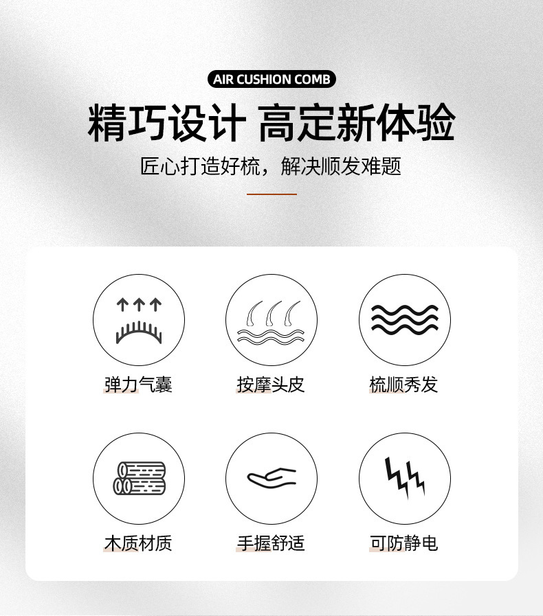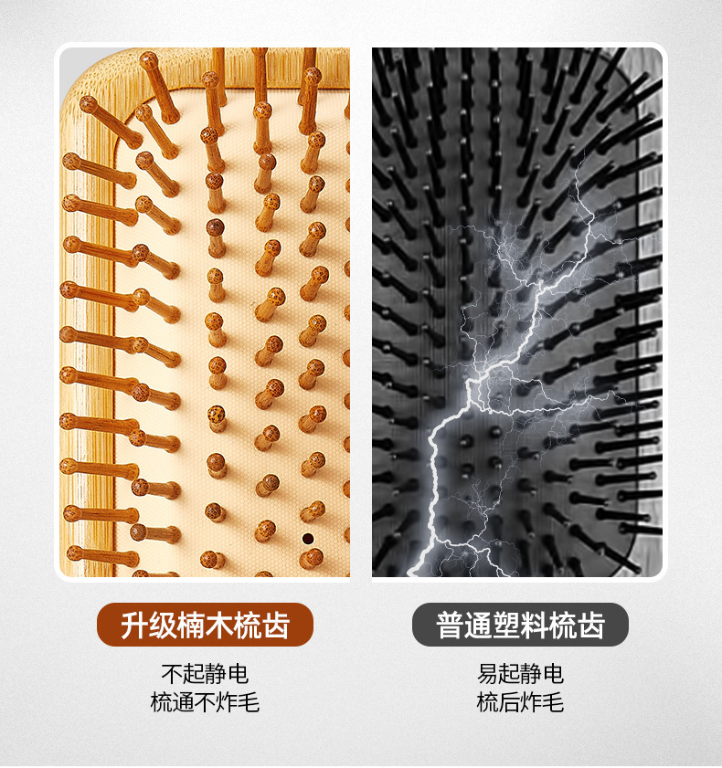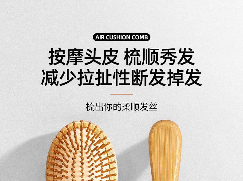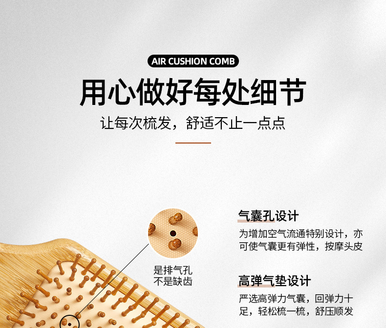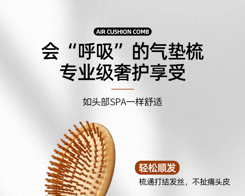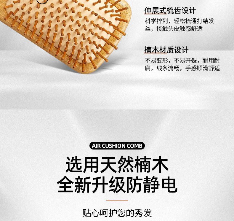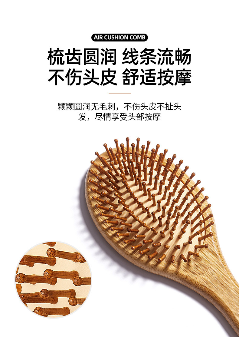 Peine de bambú, peine grande con cojín de aire, peine de peluquería para el hogar, peine para masaje de cabeza, peine de madera antiestático, venta directa de fábrica, cuidado del cabello
