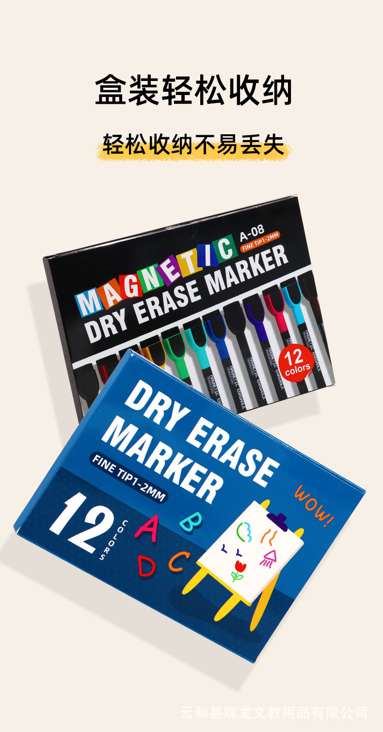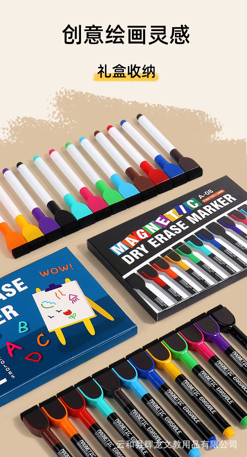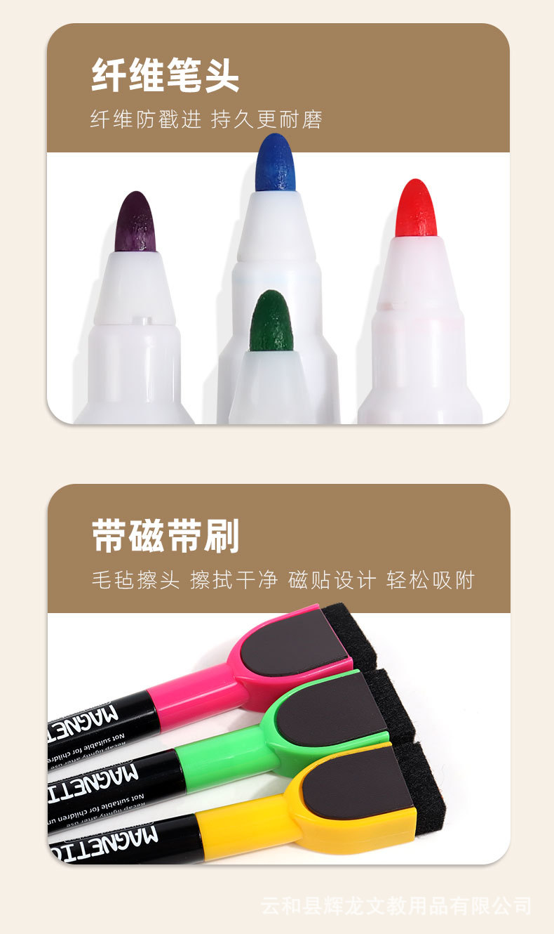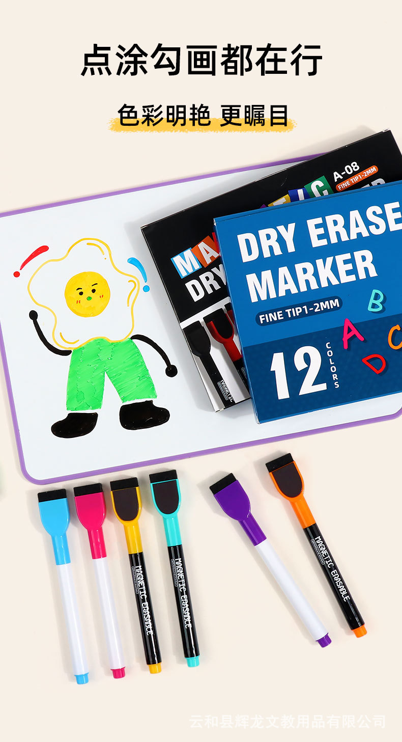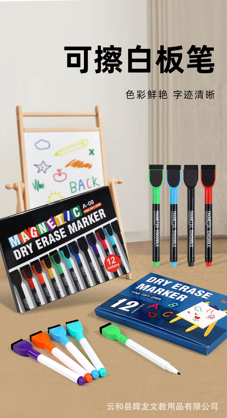Bolígrafo de pizarra al por mayor con cepillo magnético de oficina con 12 colores de gran capacidad limpiable y ecológico no tóxico
