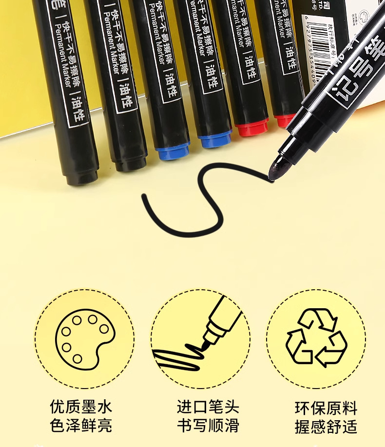 1129 lápiz de marcado de aceite a prueba de agua a prueba de aceite no es fácil de descolorar negro, azul, rojo, puntos clave, lápiz negro grueso