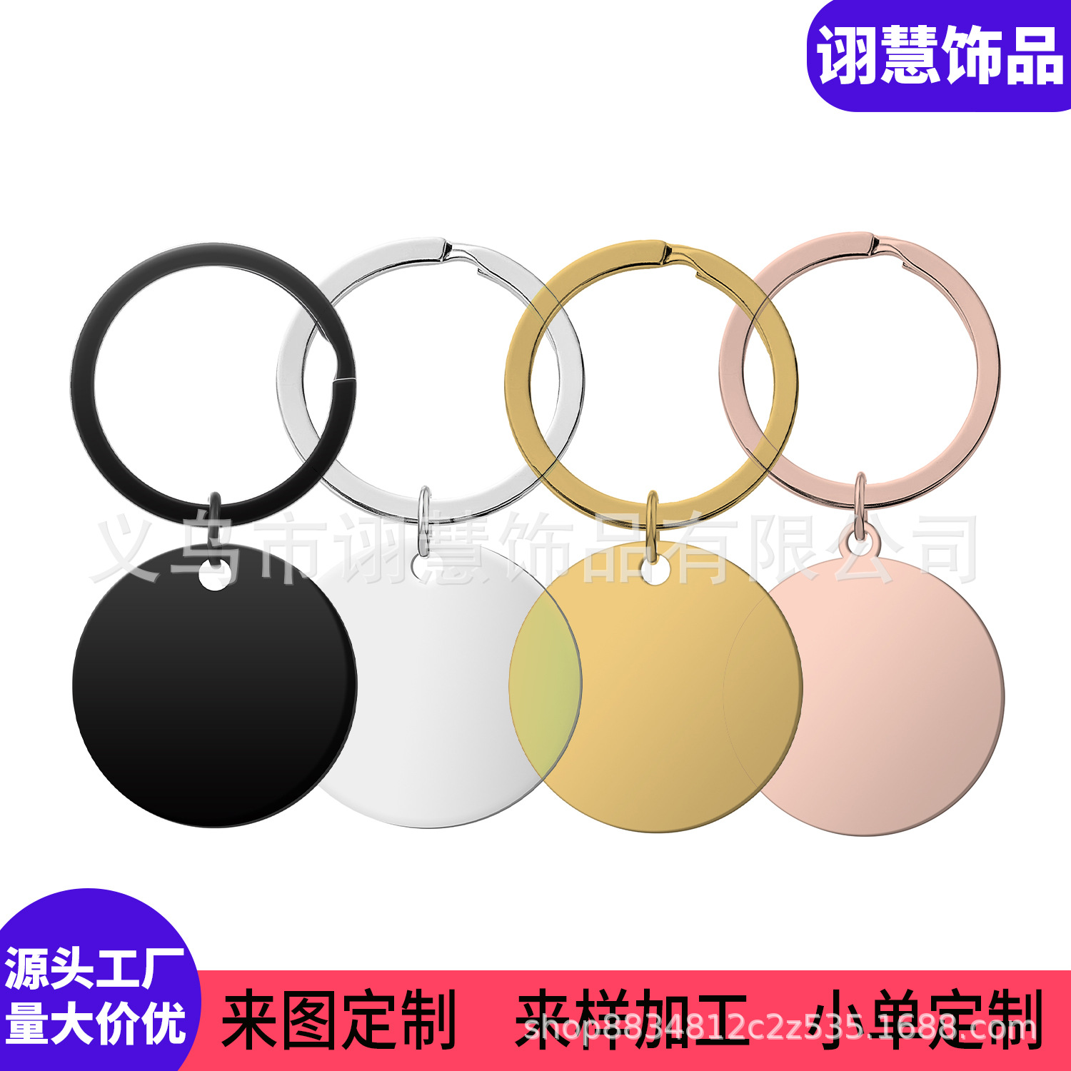 Fábrica personalizada llavero de acero inoxidable joyería en blanco negro redondo grabado de metal prueba accesorios de llave colgante