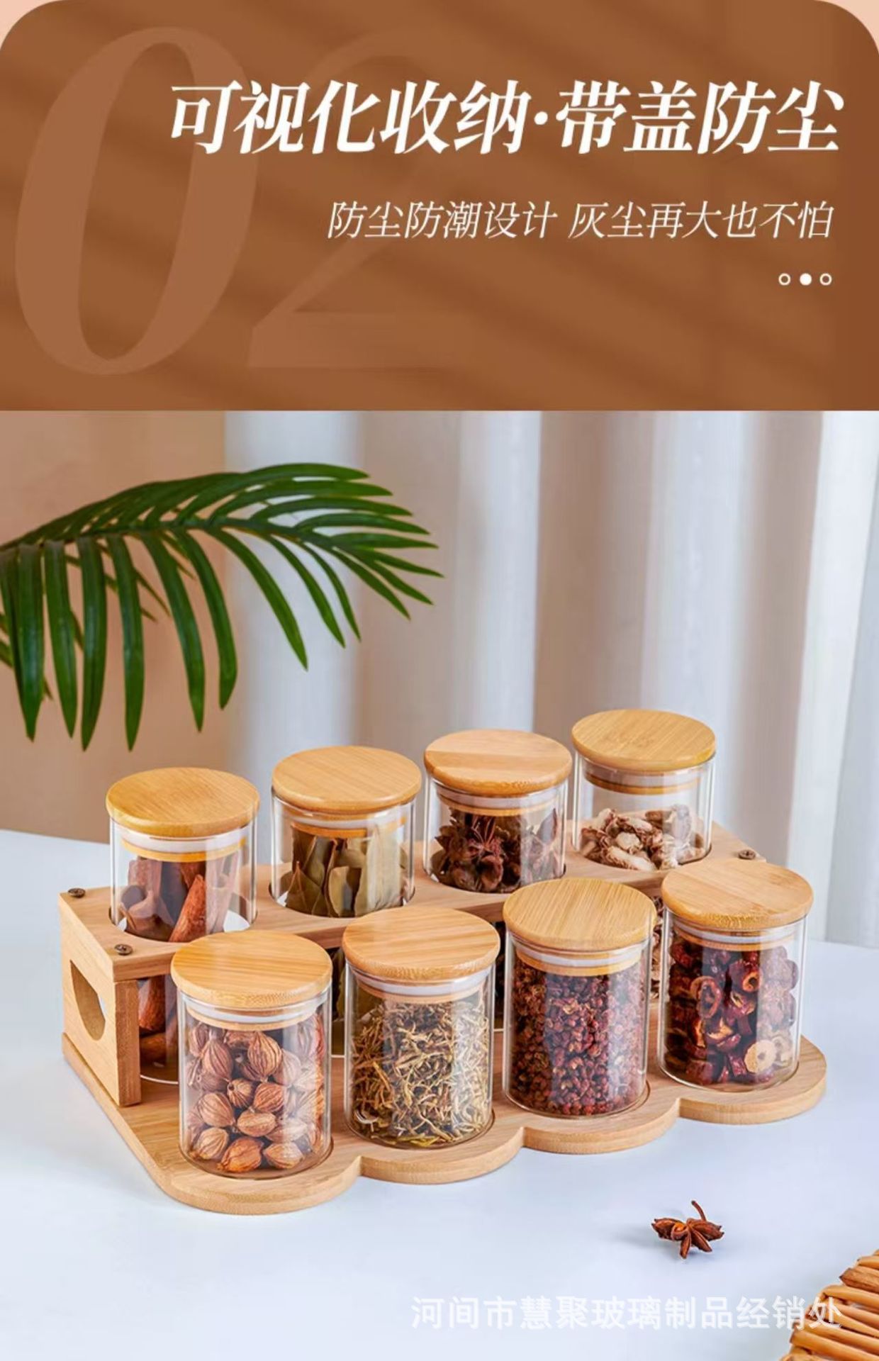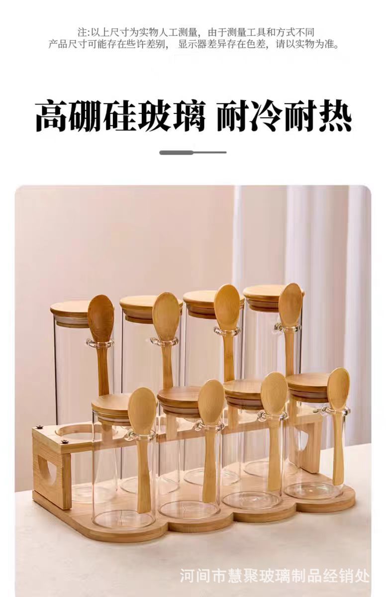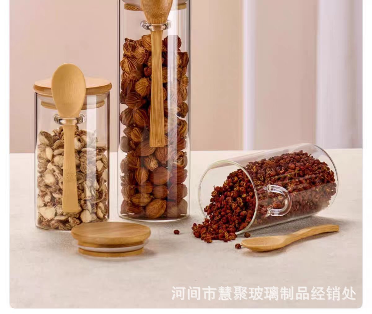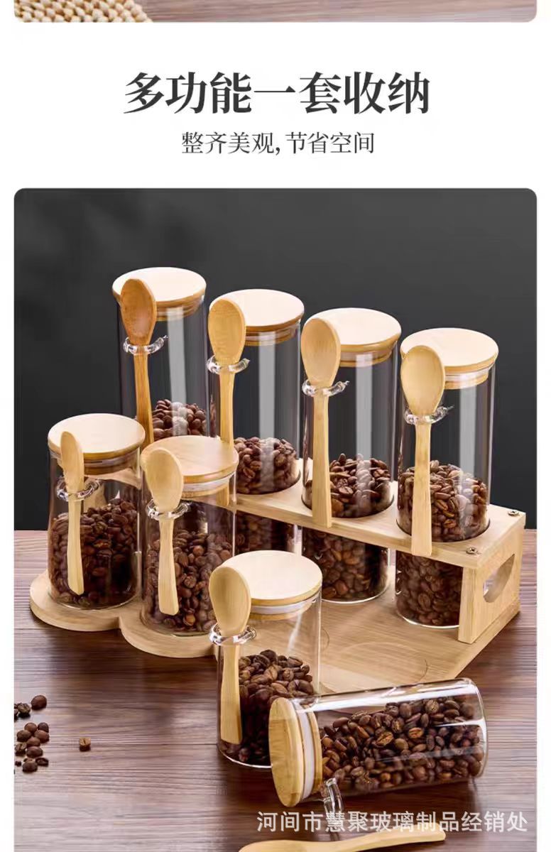 Tarro de vidrio redondo sellado Tarro de almacenamiento de granos de café doméstico con cuchara de madera botella de condimento conjunto de tanque de almacenamiento de alimentos de cocina