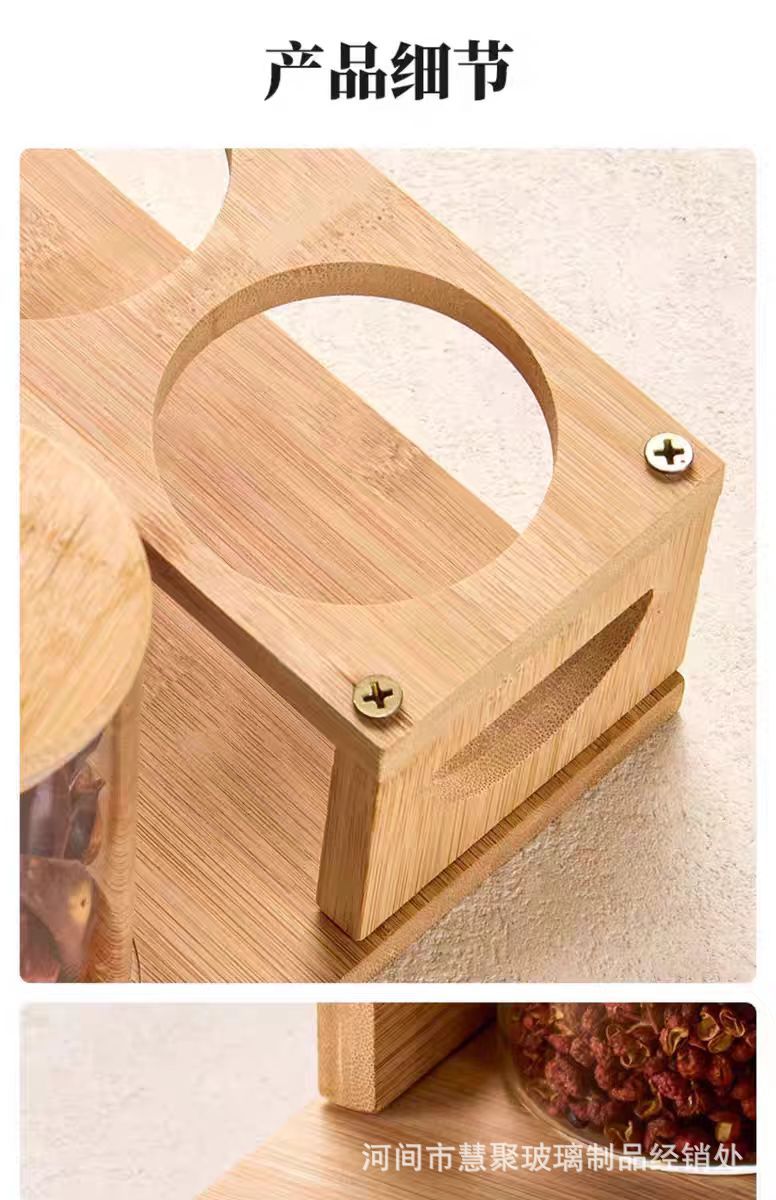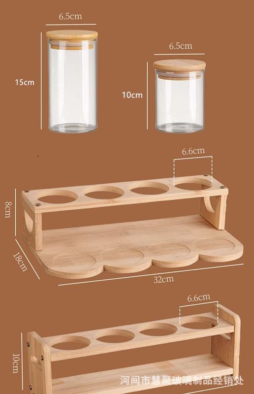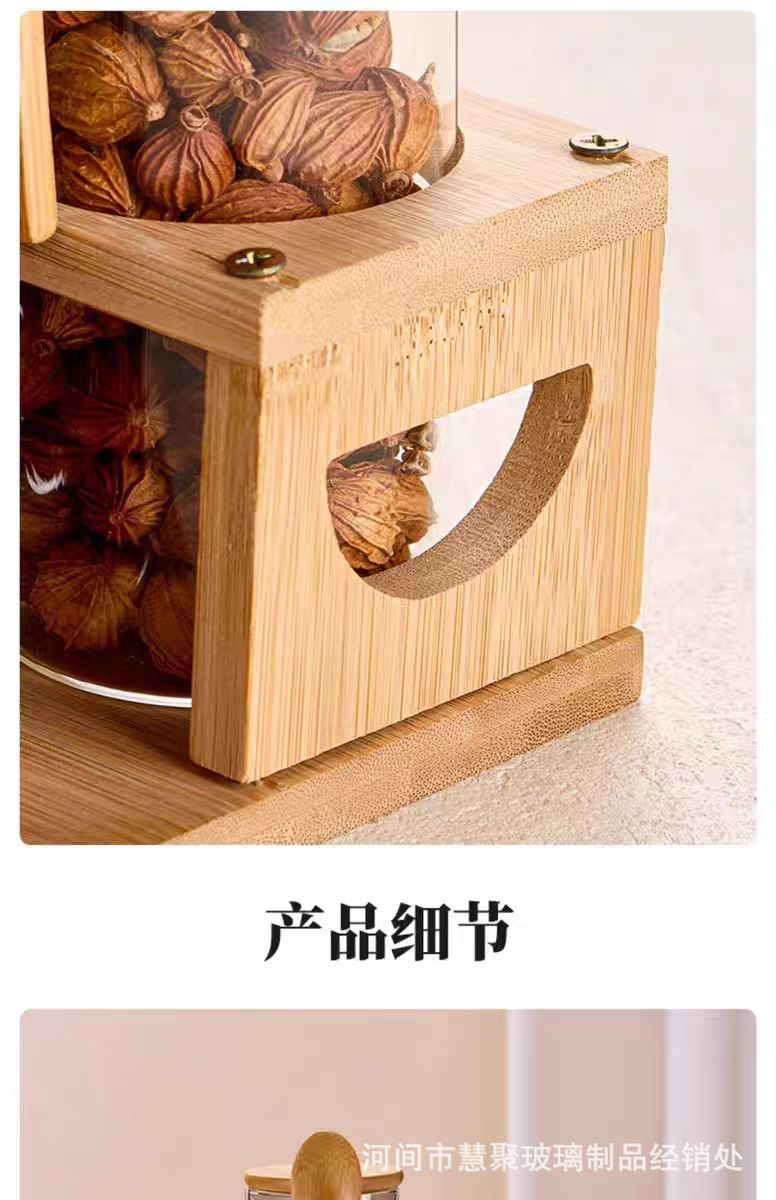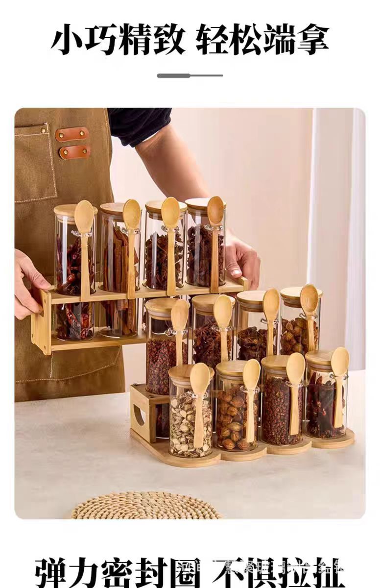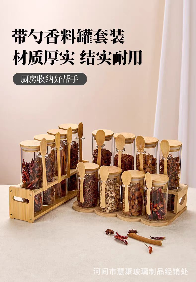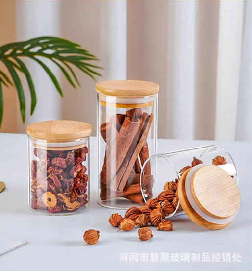 Tarro de vidrio redondo sellado Tarro de almacenamiento de granos de café doméstico con cuchara de madera botella de condimento conjunto de tanque de almacenamiento de alimentos de cocina