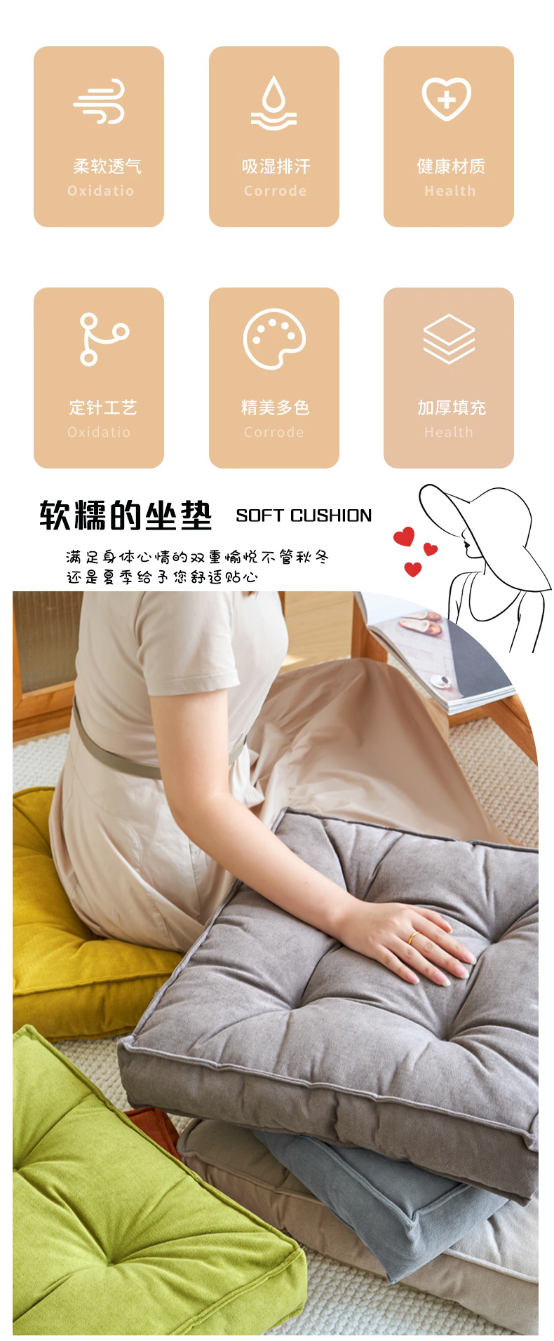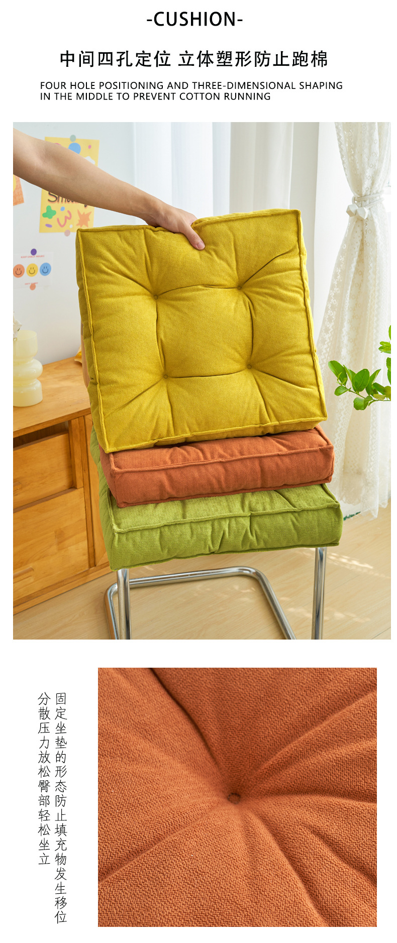 Chenille estiramiento de asiento de silla de oficina sedentario artefacto alfombra de suelo de sala de estar ventilada anti-deslizante cojín de ventana de aluminio