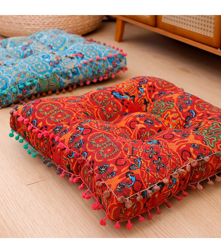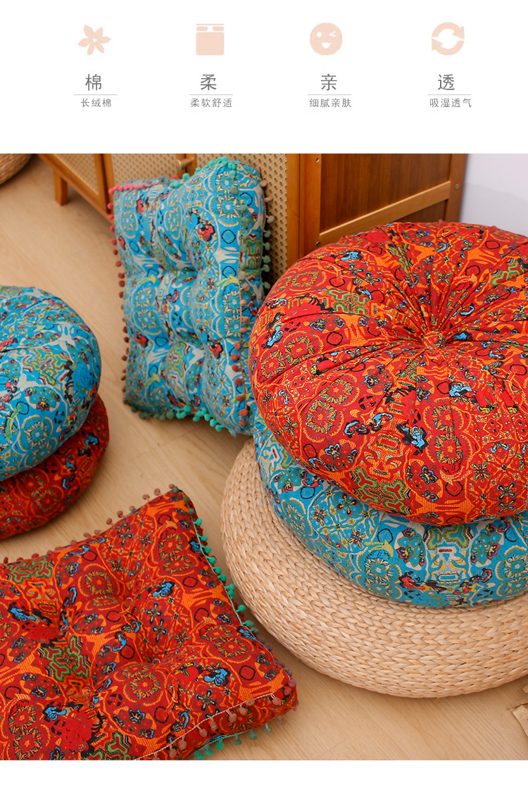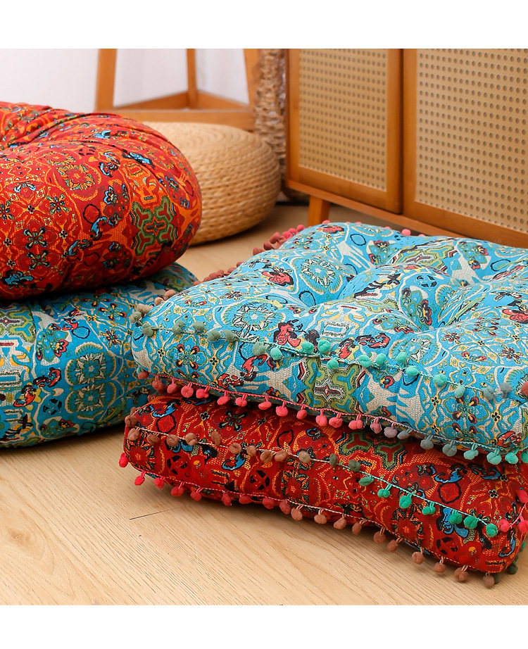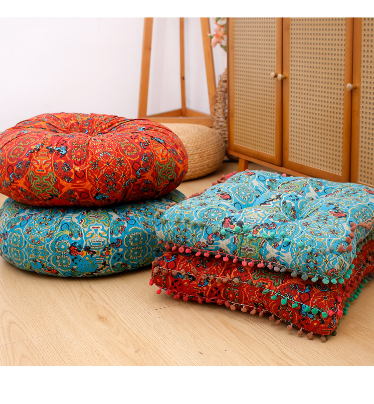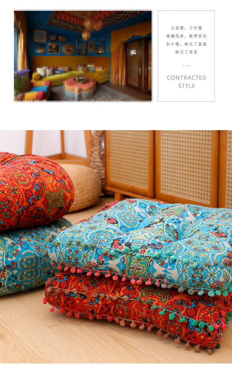 Cojín de cojín de trasero perezoso de piso grueso Cojín de tatami de ventana salediza retro Cojín de algodón y lino